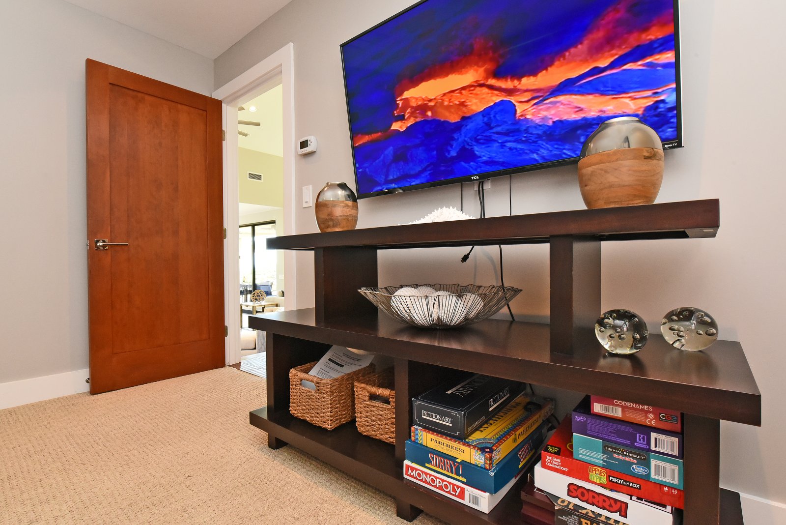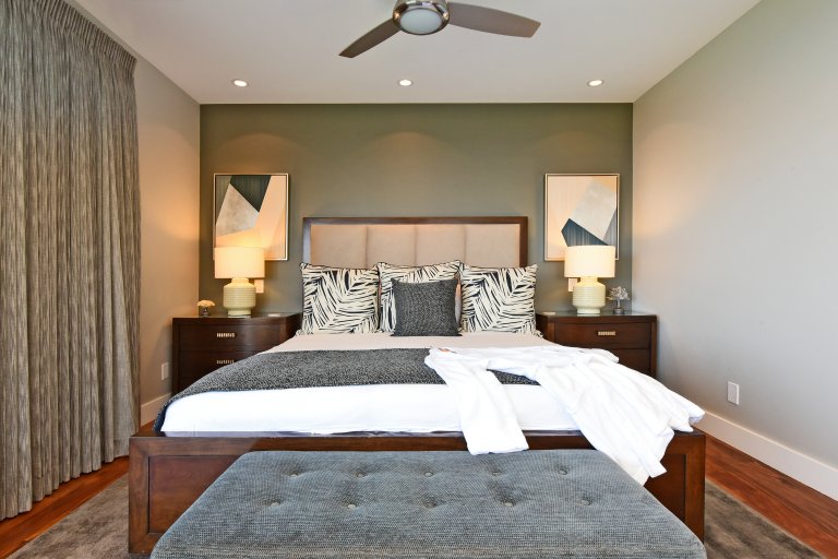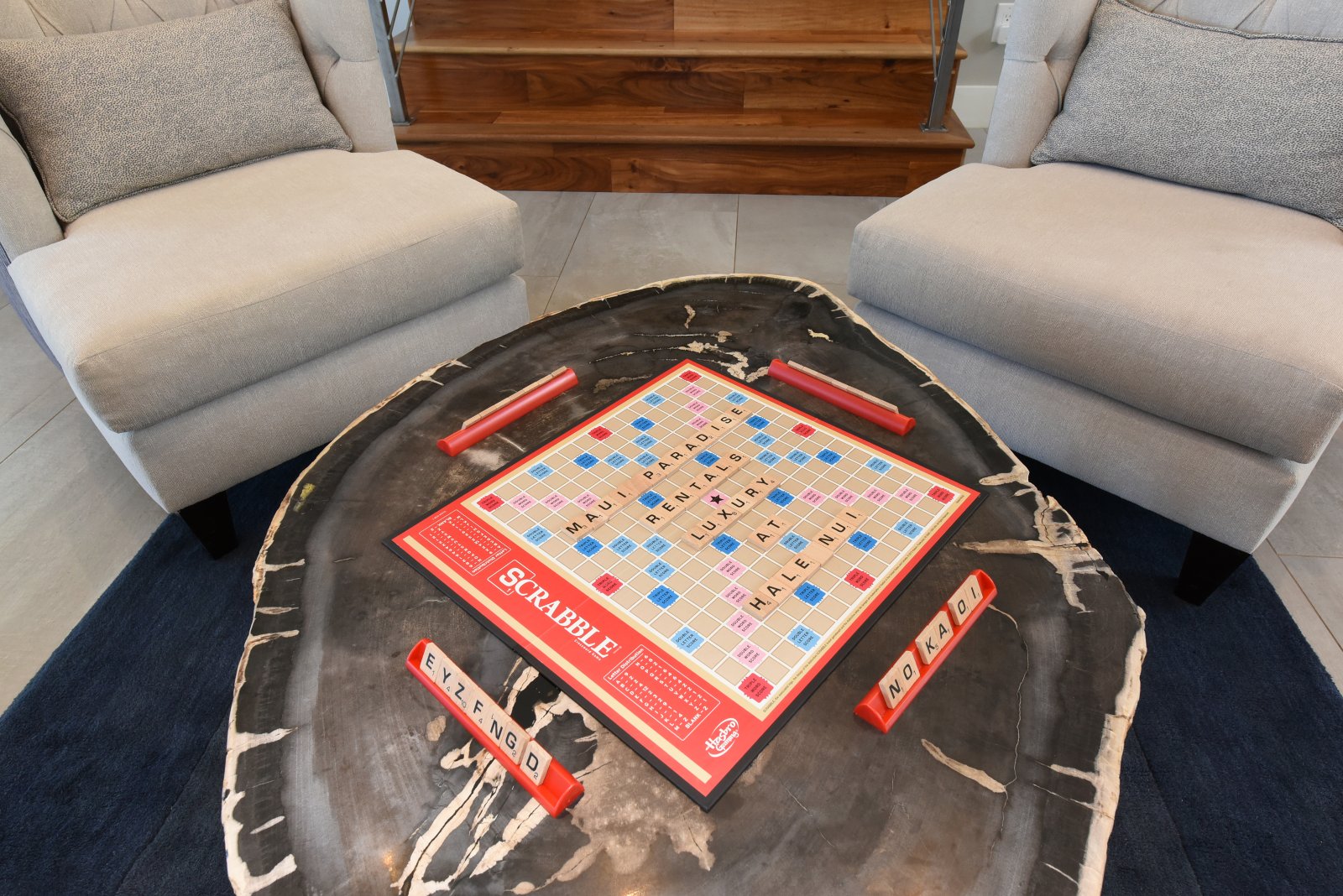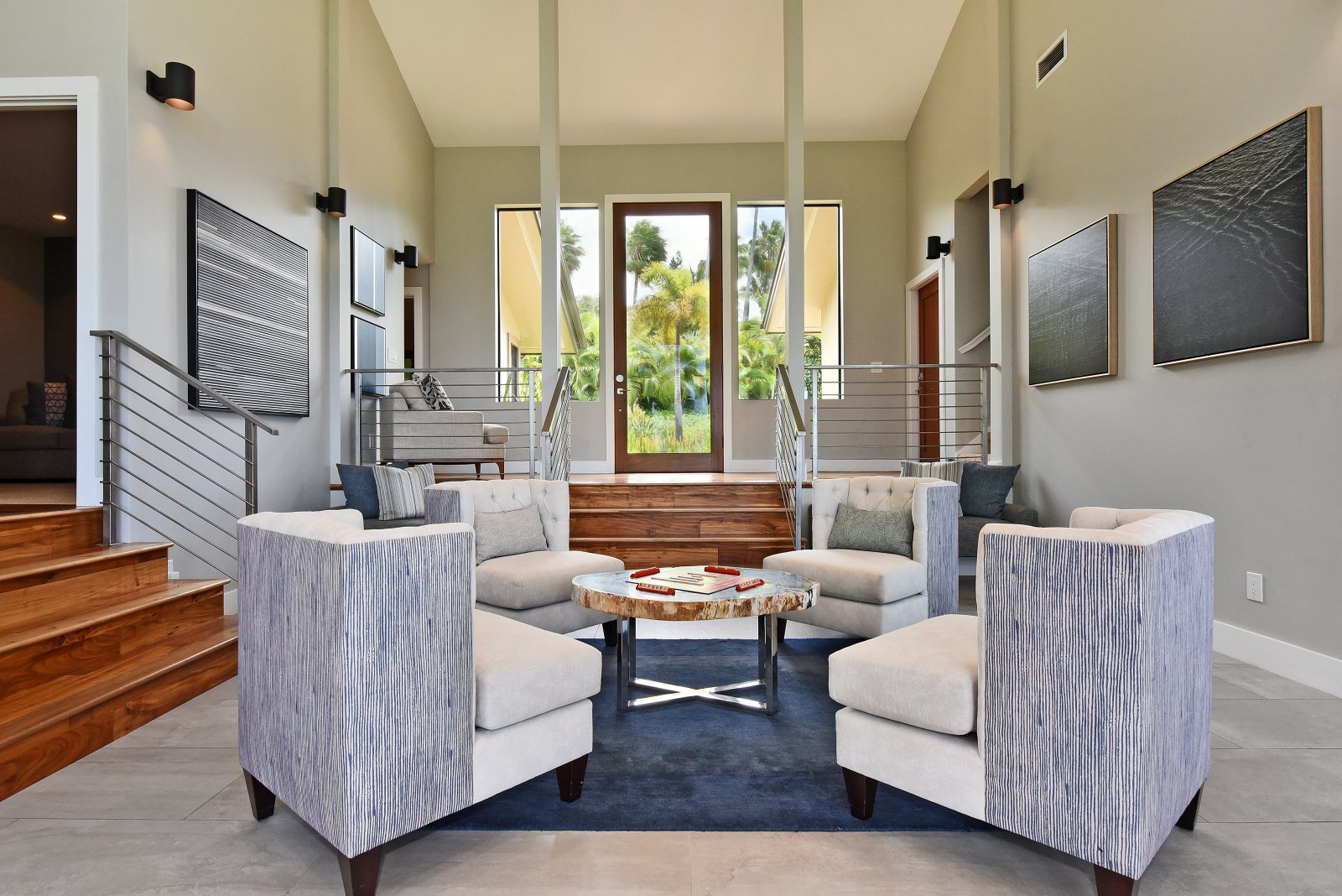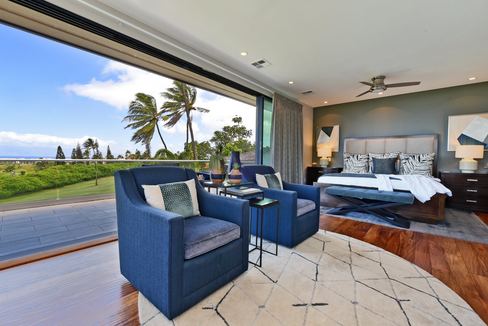 Photos don't accurately capture the leisure and relaxation found in the central living area of Hale Nui. Whether you choose to read a book, listen to your favorite playlist, or roll around the floor with toddlers – you'll enjoy any activity in natural sunlight gleaming through colossal picture windows, and under the highest ceilings. The billiard room sits above the living area and has a big screen TV and bar seating. In this same space, you'll find a media/game room with a 55” 4K TV with built-in ROKU and board games on the shelves.
