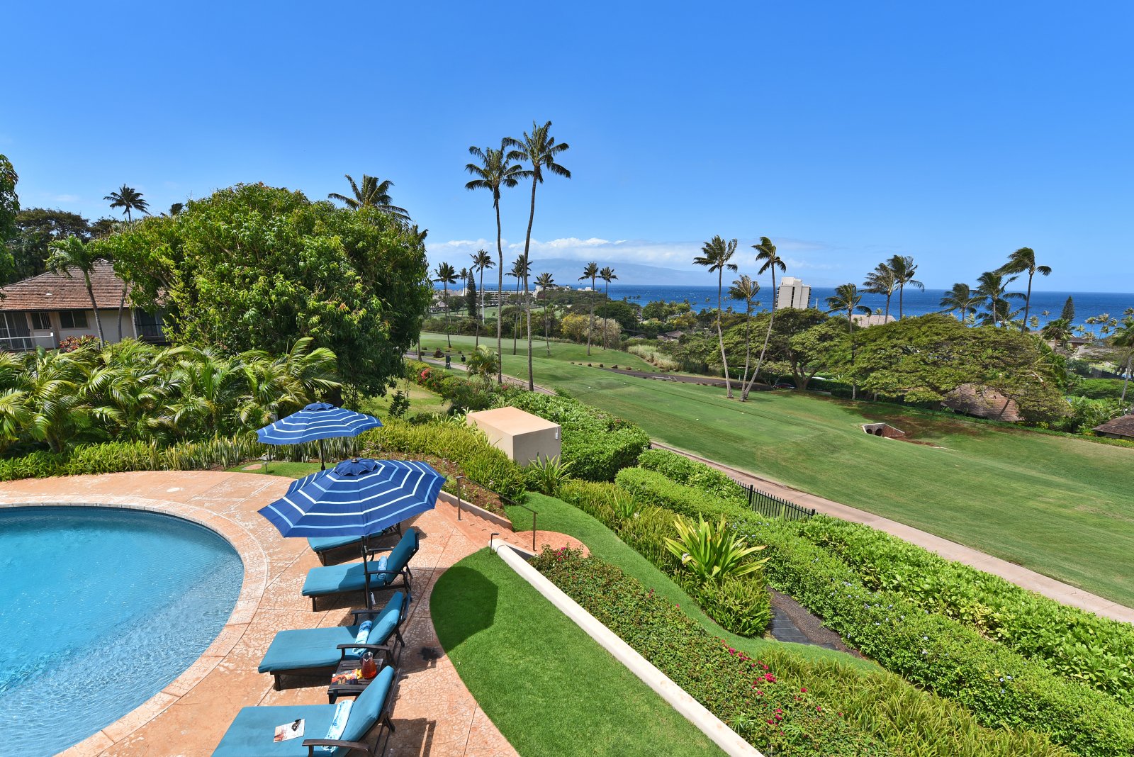 Hale Nui is a stunning multi-level masterpiece smartly positioned in a quiet cul-de-sac and rests atop the world-famous Ka'anapali Golf Course. (Ask about discounts on tee times!) Within minutes, you are at your favorite restaurants, browsing through shops, and sinking your toes in the sand at nearby Ka'anapali Beach. Once back at Hale Nui, an unforgettable sunset view brings an end to a day of non-stop excitement!