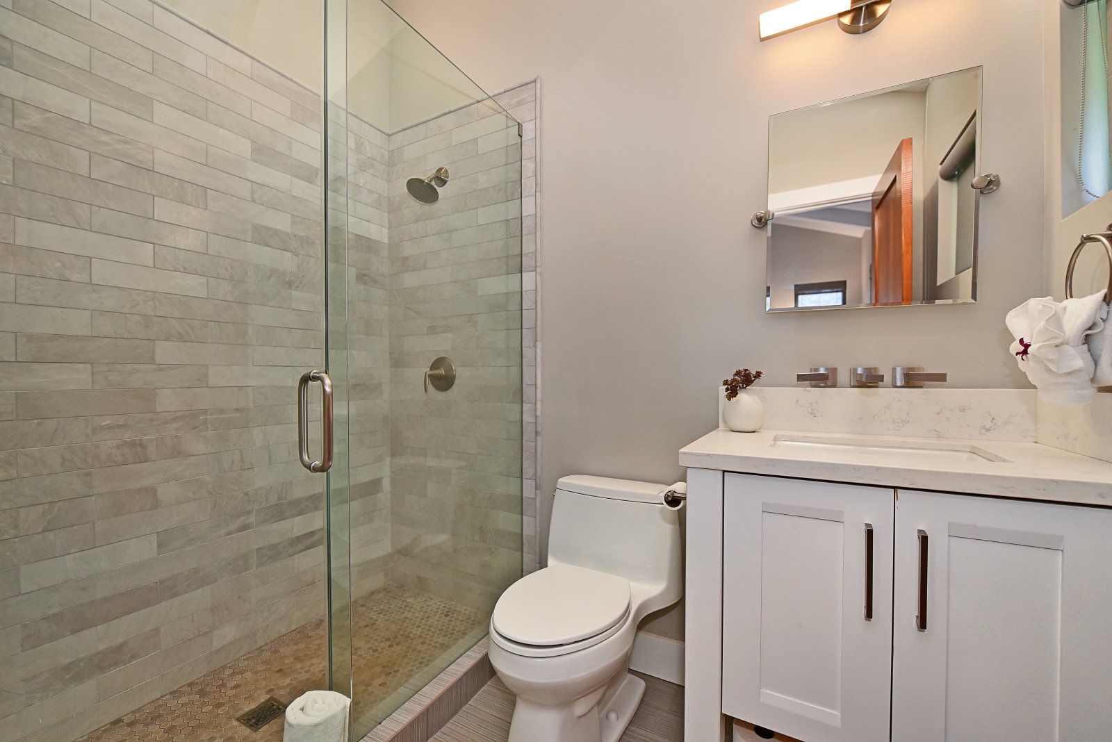 Bed: Queen Bed • En-Suite Bath with Walk-In Shower • Flat-Screen TV