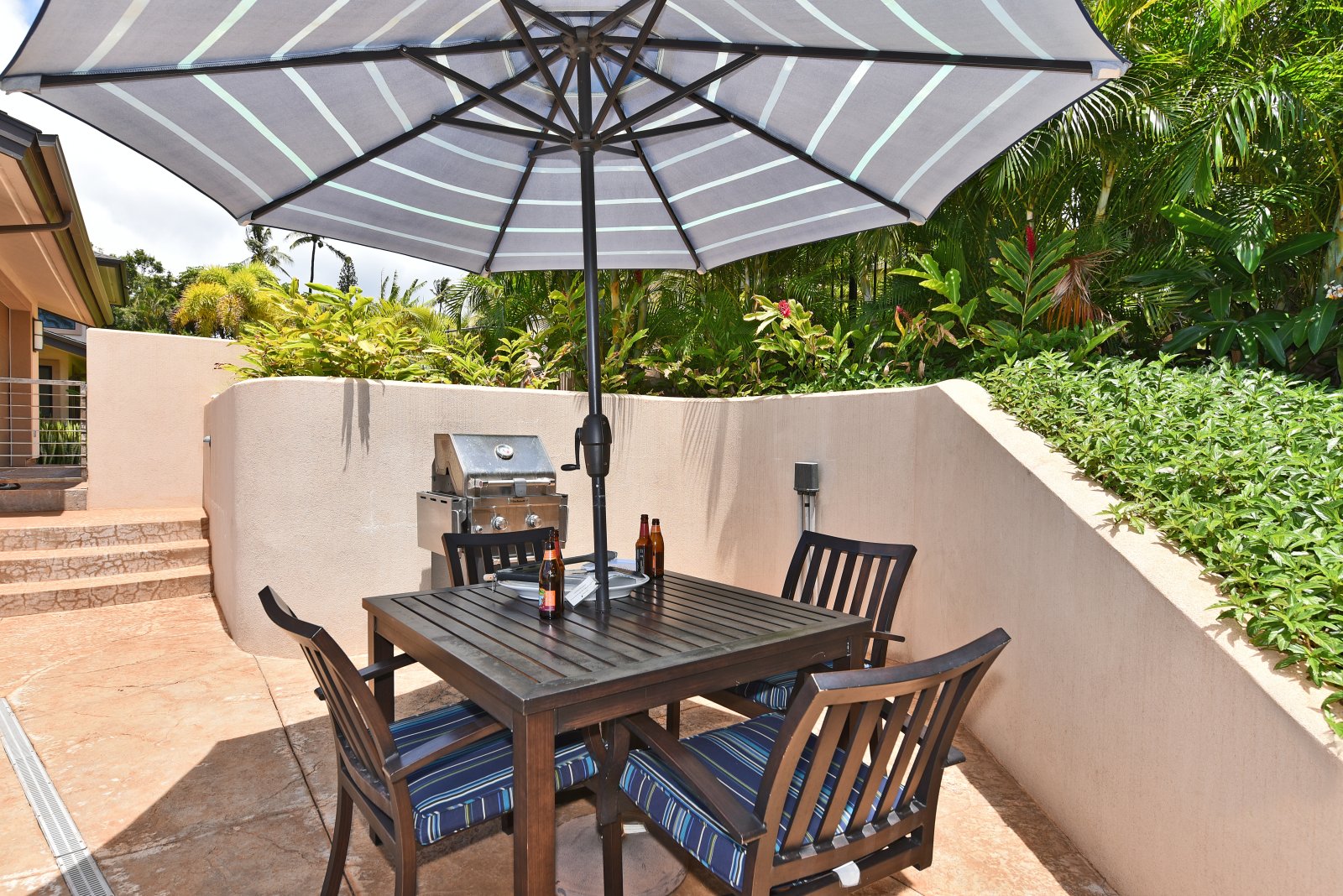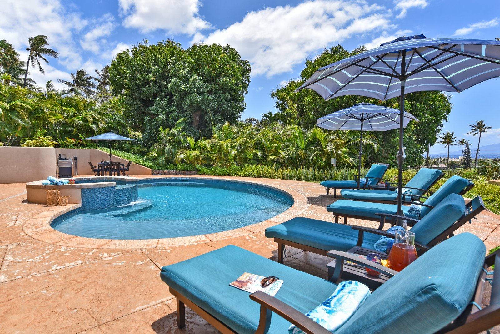 Hale Nui features a refreshing outdoor swimming pool and jacuzzi spa, with enough lounge chairs for everyone to enjoy. Here, you'll also want to make good use of the outdoor gas grill. For beachgoers, there's an outdoor shower and half-bath at poolside. The enchanting embrace of Hale Nui will linger long after you return home.