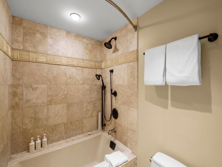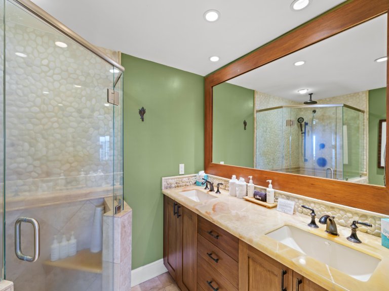 Two well-appointed bathrooms with walk-in showers provide convenience and ease for all guests.