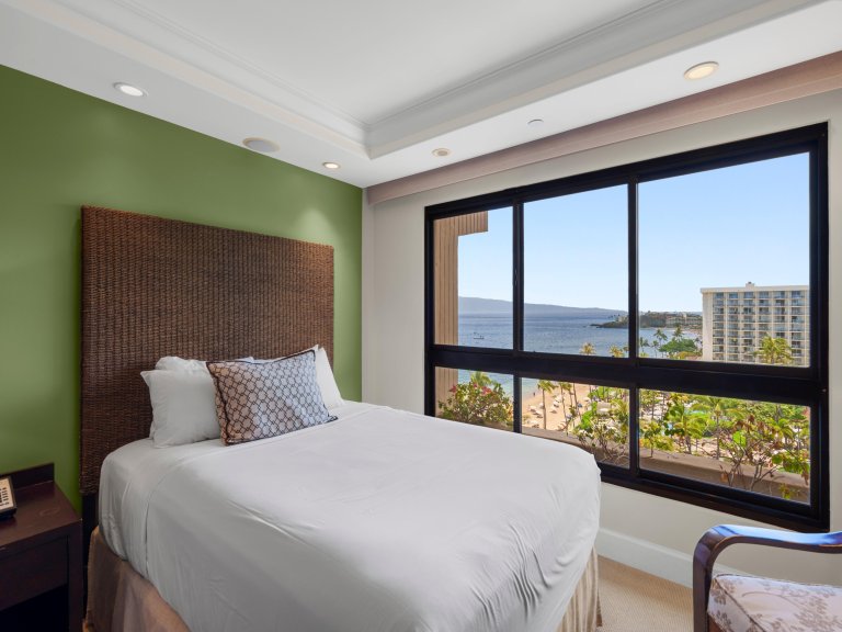 Overlooking swaying palms and the manicured grounds of Kaʻanapali Aliʻi Resort, the residence captures the essence of Maui beachfront living. Expansive windows and a private lanai invite natural light and ocean breezes throughout, creating a seamless connection to the coastline below.