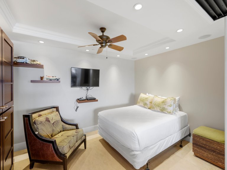 Bed: California King • En-Suite Bath with Dual Vanity * • TV • Ceiling Fan • Direct Access to Terrace • Ocean View