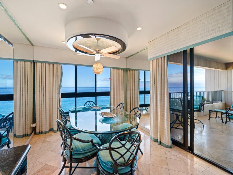 The private lanai offers an exceptional oceanfront setting.
