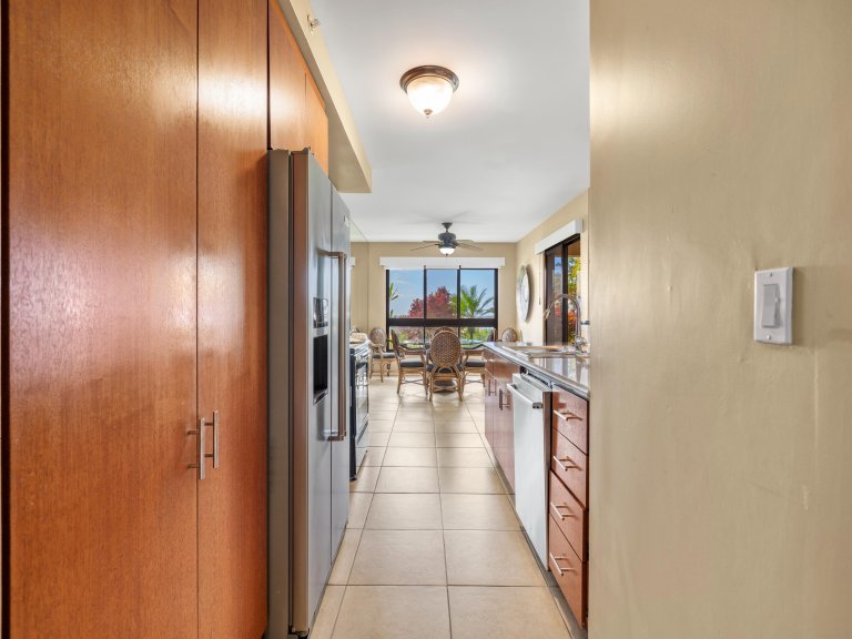 The private lanai serves as a peaceful extension of the living space, furnished with comfortable seating and a table for enjoying morning coffee or evening cocktails. From this elevated vantage point, the Pacific Ocean stretches to the horizon while neighboring islands provide a stunning backdrop.Just steps away, the soft sand and clear waters of Kā‘anapali Beach invite swimming, snorkeling, and sunset walks along one of Maui’s most celebrated shorelines.