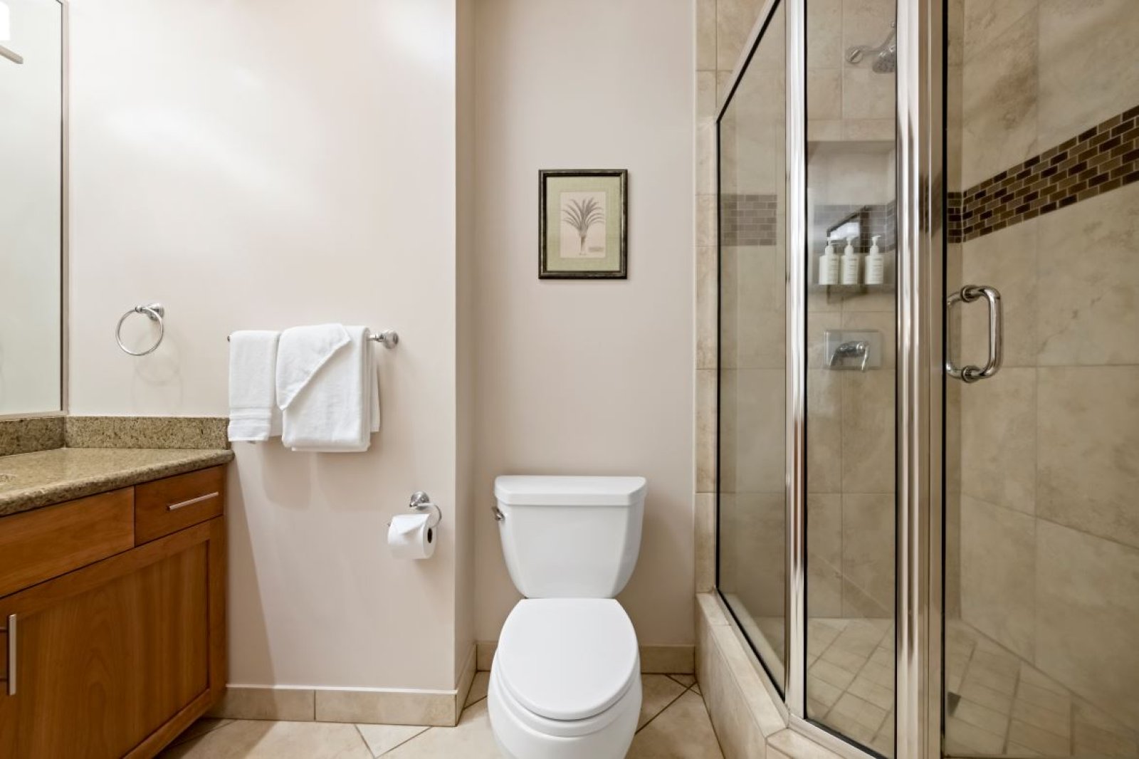 From the moment you enter, tropical design elements and natural light set the tone for a welcoming retreat. Large windows and sliding glass doors frame views of swaying palms and the distant ocean, while the private lanai provides a peaceful setting to unwind after a day exploring West Maui.