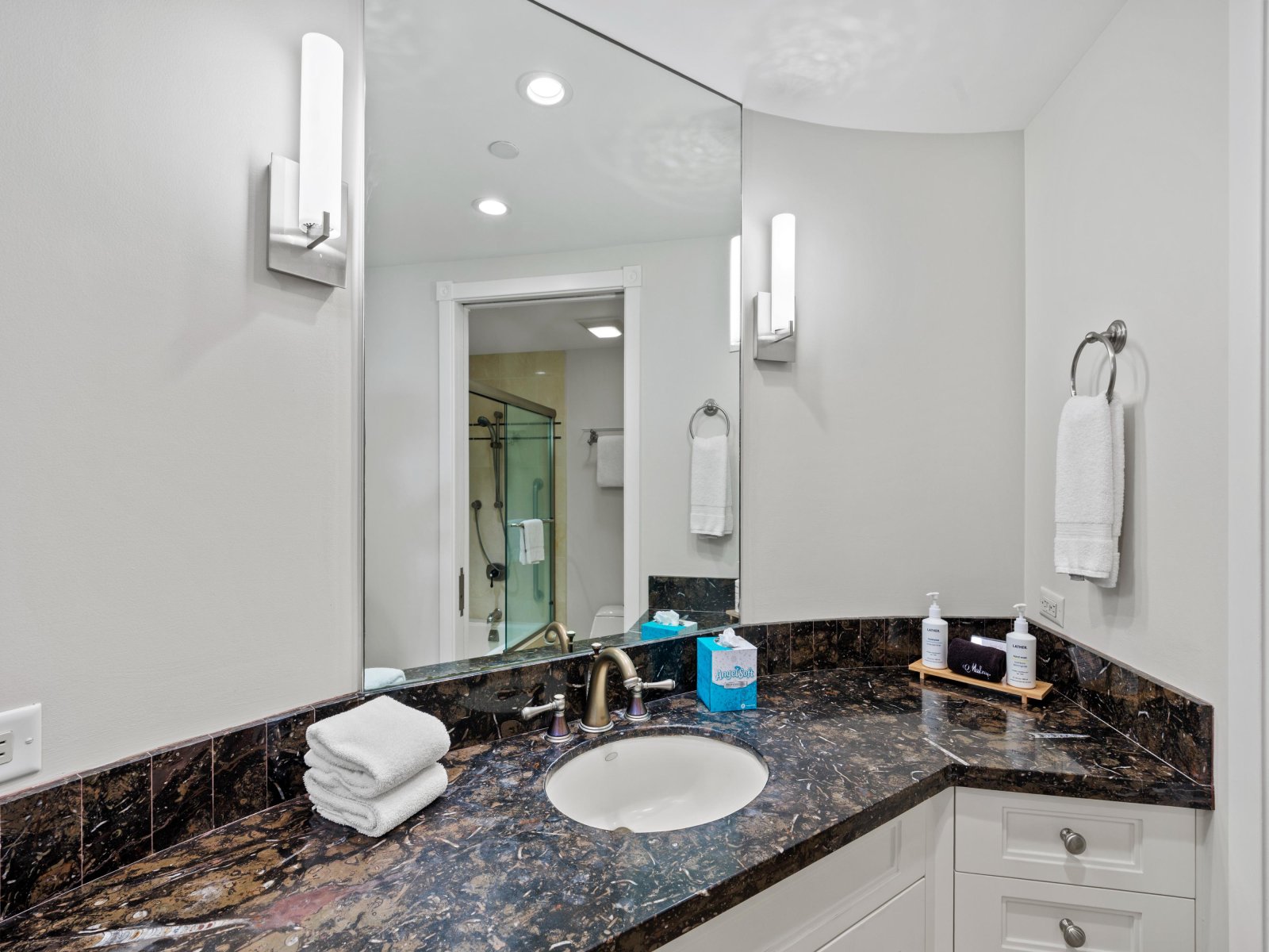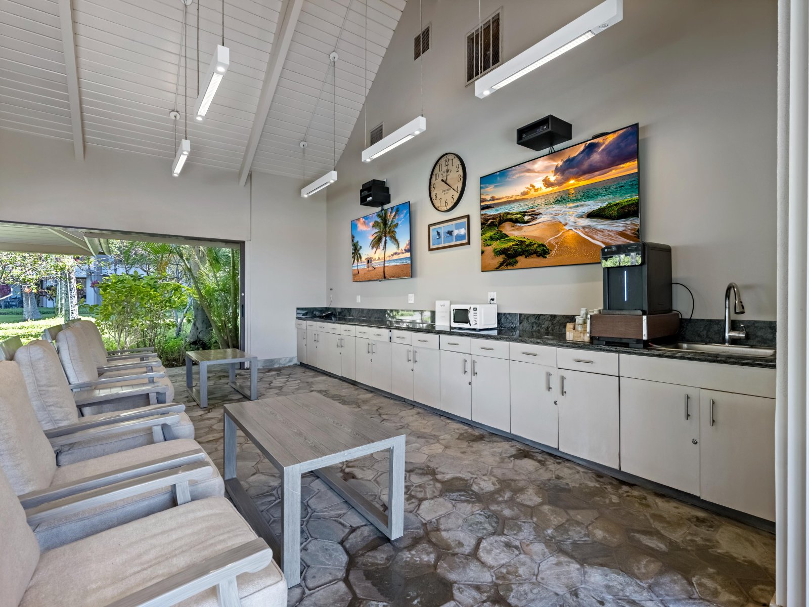 The private lanai is a favorite gathering place, perfect for watching Maui’s celebrated sunsets with a drink in hand or enjoying quiet mornings with coffee and fresh tropical fruit as the ocean comes to life below. With chaise lounges and dining seating, the lanai offers flexibility for both relaxation and alfresco meals.