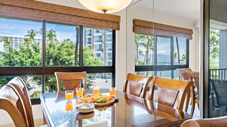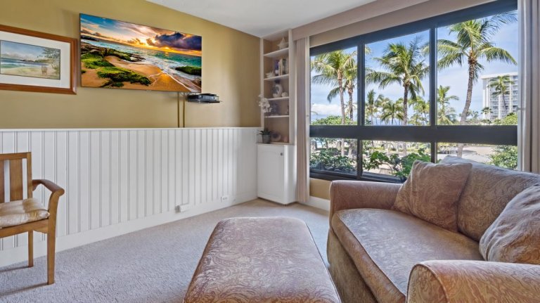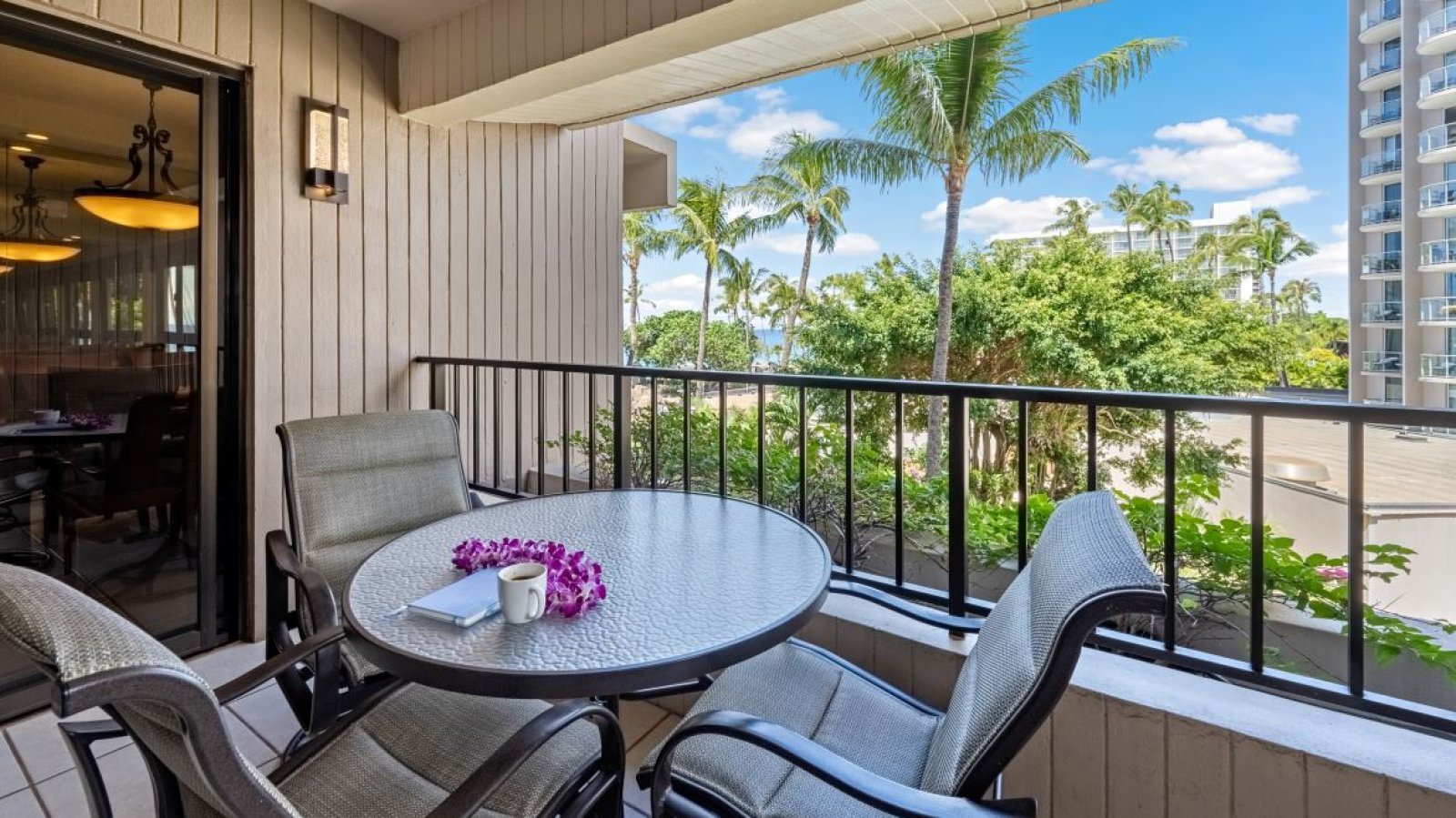The private lanai provides a peaceful setting to enjoy Maui’s scenery and gentle breezes.