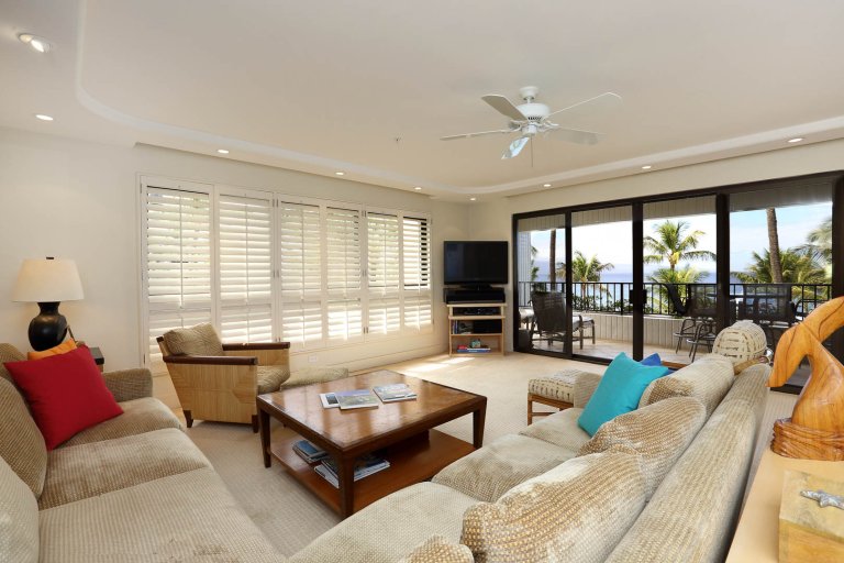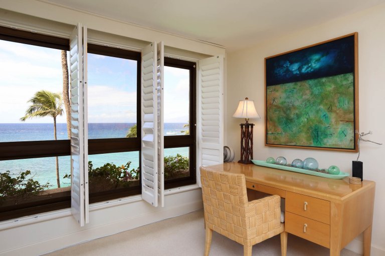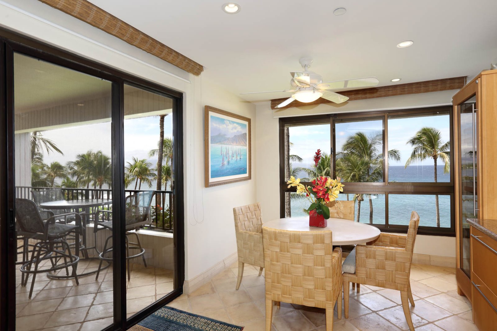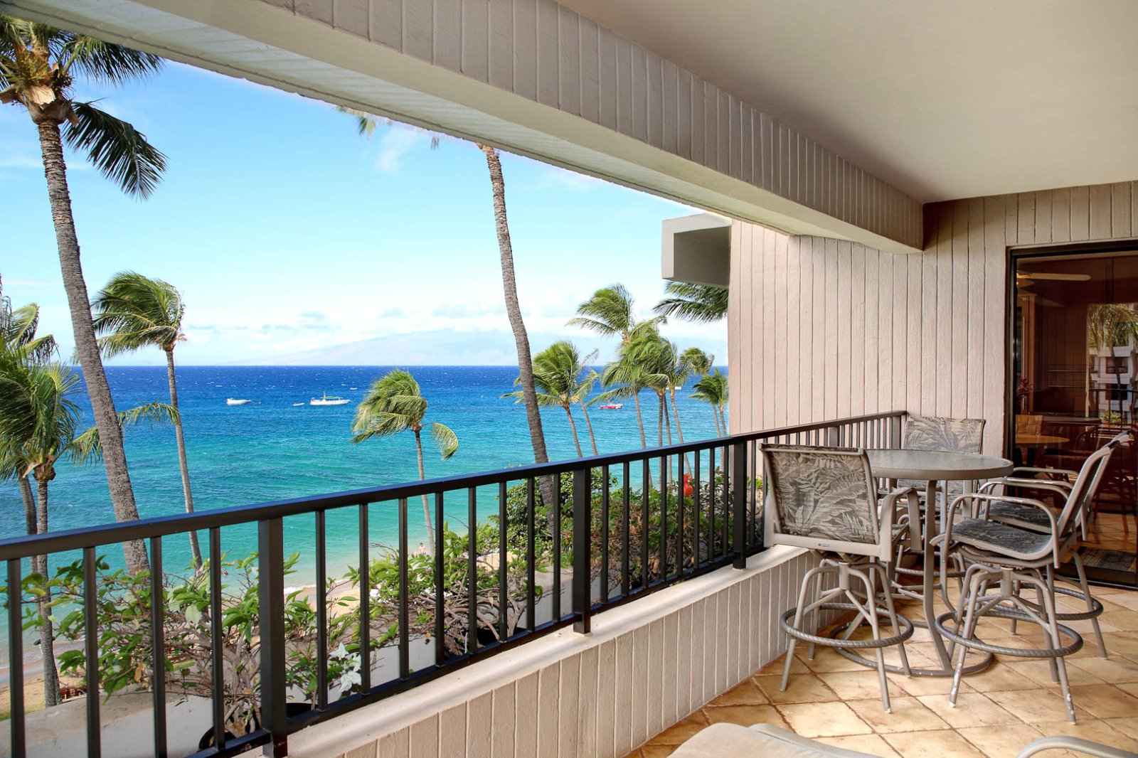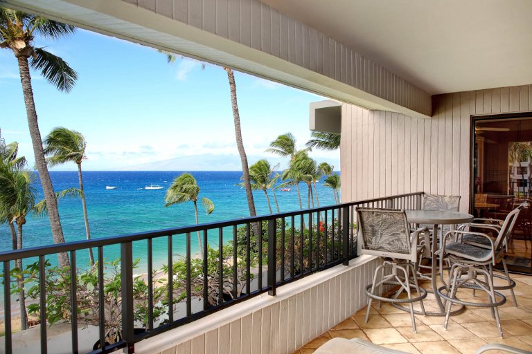 The private oceanfront lanai offers an inviting place to enjoy Maui’s scenery.
