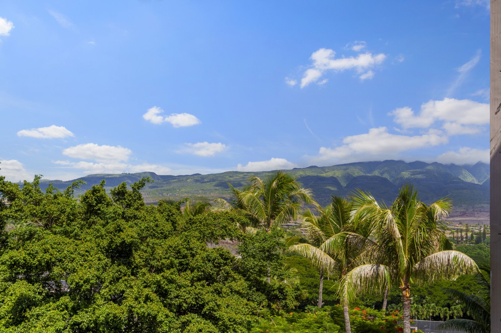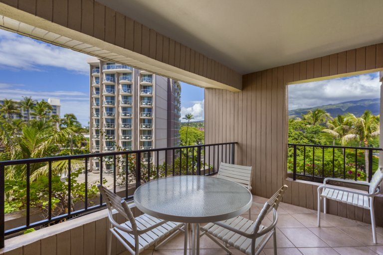 - Furnished lanai with seating and partial ocean views