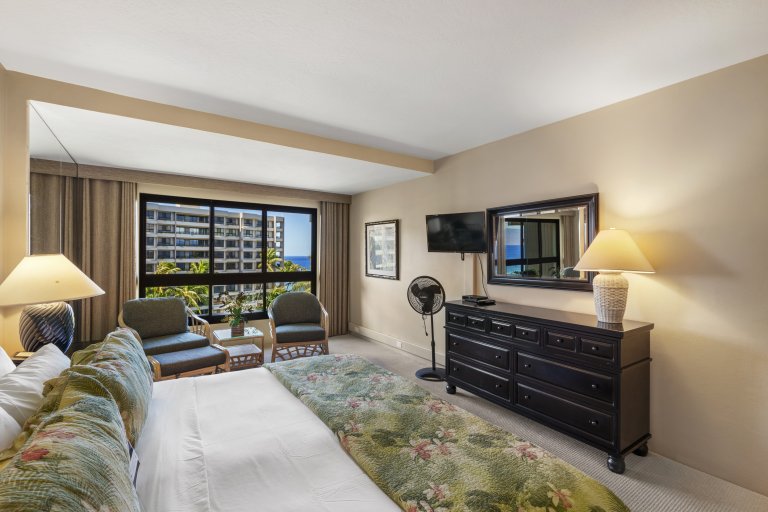 Kaʻanapali Aliʻi 184 offers flexible sleeping arrangements that comfortably accommodate families or groups.• Primary bedroom with California king bed