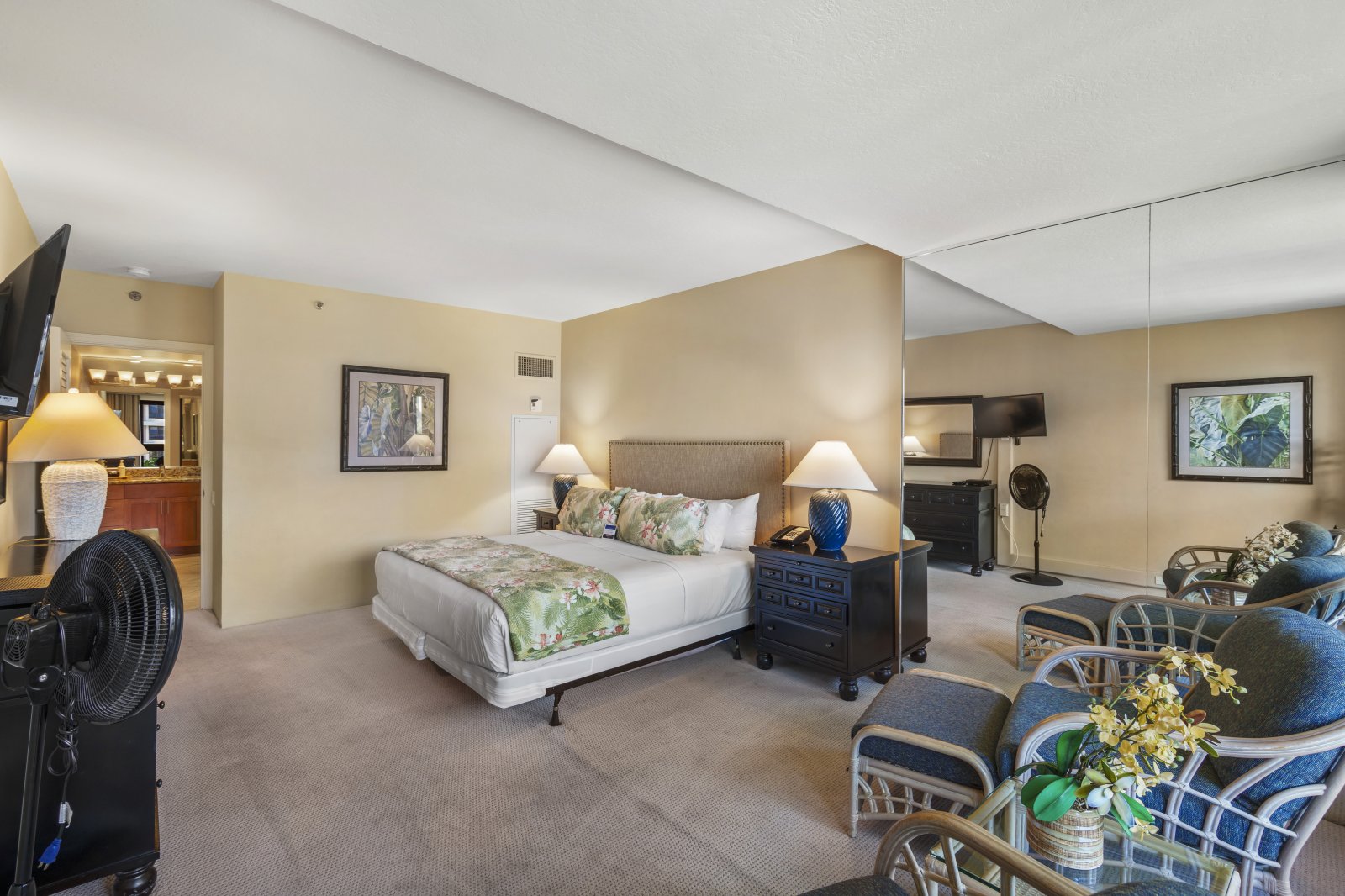 Bed: California King • En-Suite Bath with Shower and Bathtub • Flat-Screen, Cable TV • Additional Seating