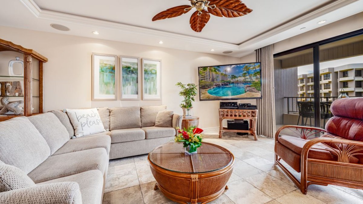 With 1,544 square feet of interior living space, the residence offers a spacious and functional layout well suited for couples, families, or small groups seeking comfort and style just steps from Kaʻanapali Beach.