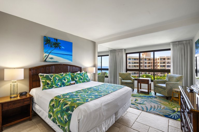 Kaʻanapali Aliʻi 194 offers comfortable and flexible sleeping arrangements.• Primary bedroom with California king bed and ocean views