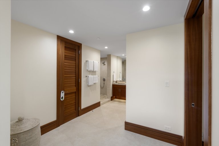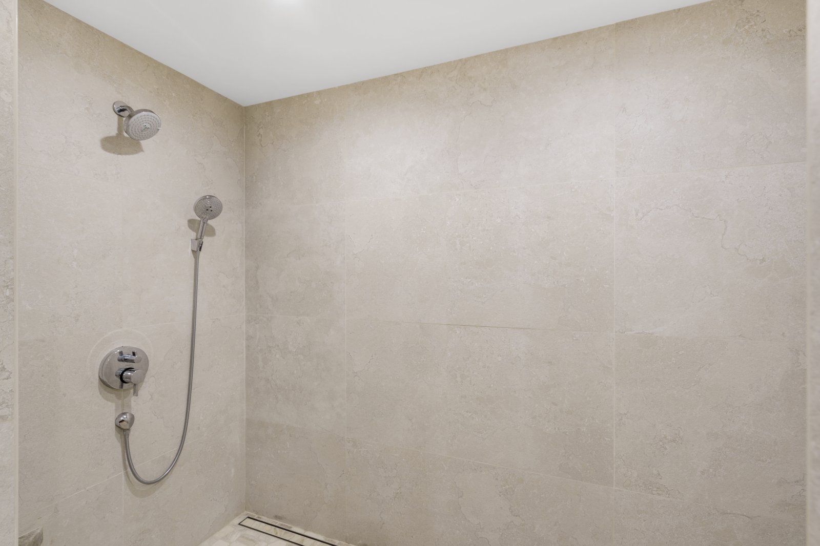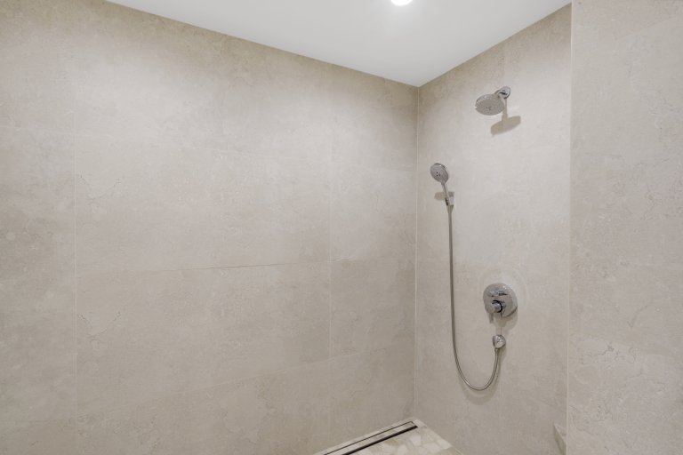 The spacious primary suite features a California king bed, ample storage, and a spa-inspired en-suite bathroom. The oversized walk-in shower with four shower heads provides a luxurious end to each day.