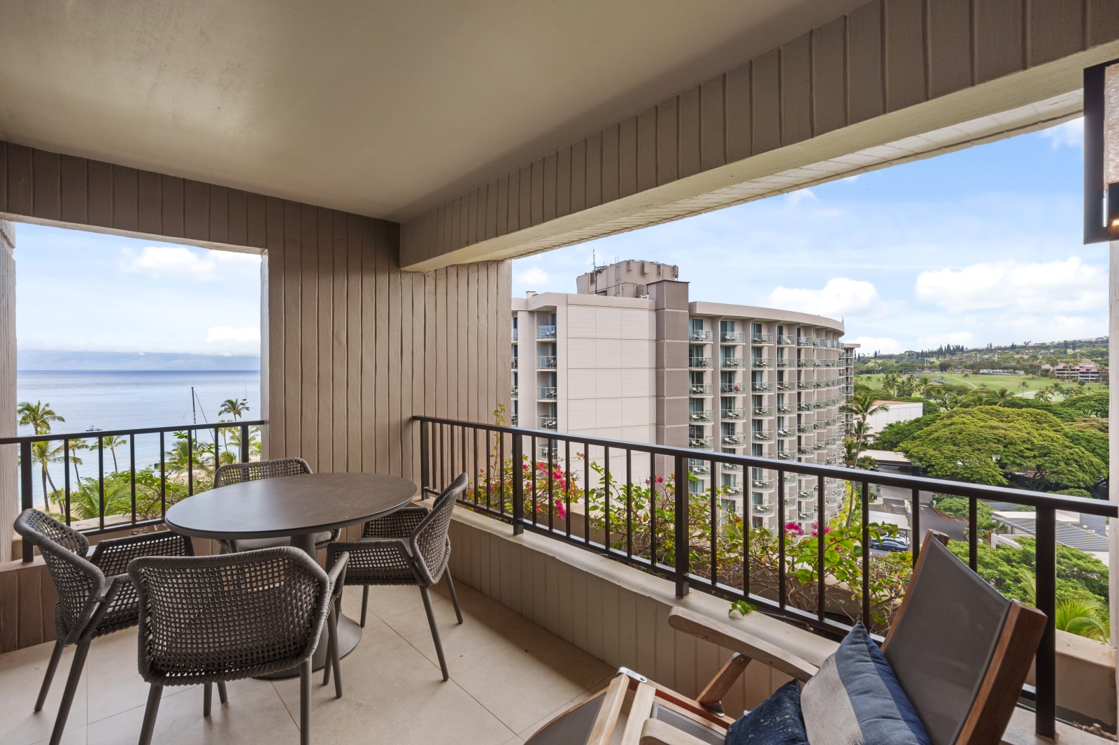 The private lanai serves as an extension of the living space, offering lounge seating and a dining table overlooking Kaʻanapali Beach. From morning coffee to sunset cocktails, the lanai is a favorite gathering place throughout the day.Guests enjoy immediate access to the resort’s beachfront setting, swimming pools, tennis courts, and barbecue areas, all just steps from the residence.