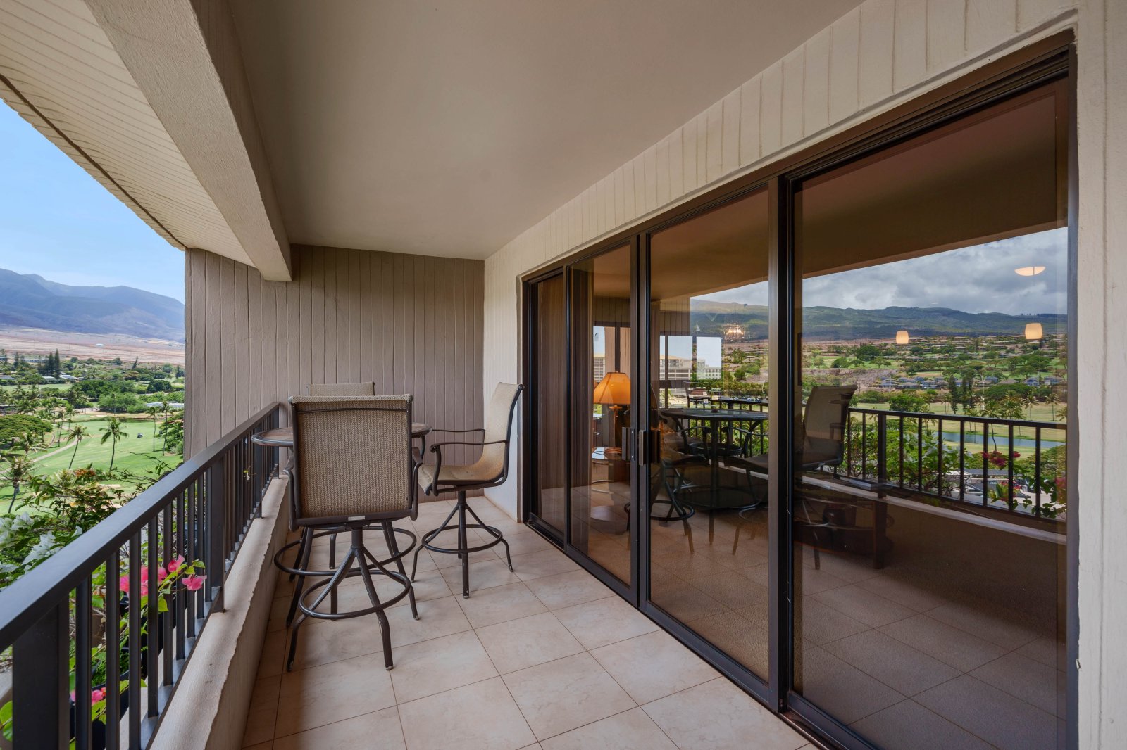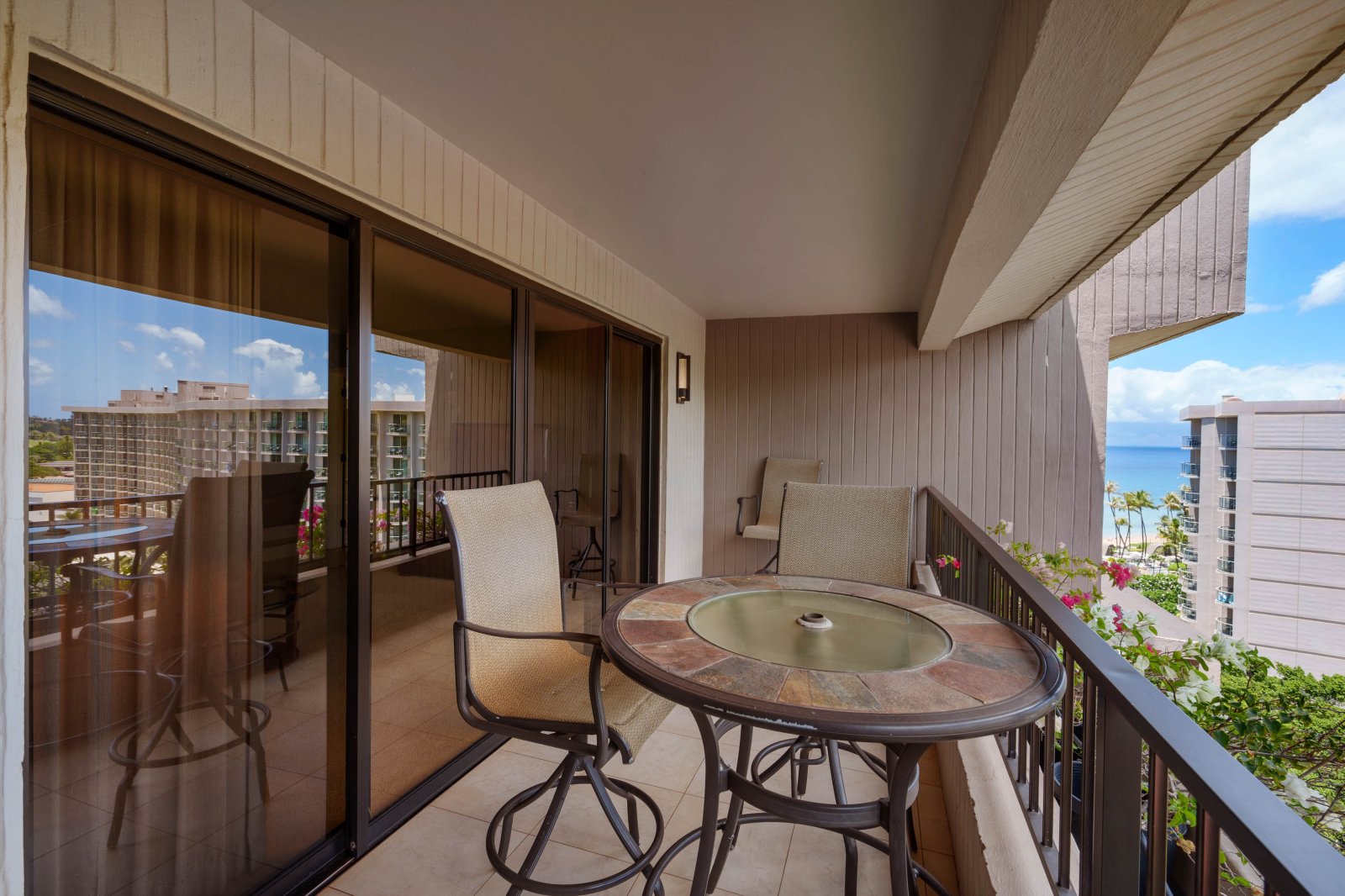 The private lanai is an inviting extension of the interior living space, furnished with lounge seating and a dining table. Overlooking the resort’s tropical grounds and the West Maui Mountains, it offers a tranquil setting for morning coffee, afternoon relaxation, or evening unwinding. Guests enjoy easy access to the resort’s pools, tennis courts, and barbecue stations.Residence Details