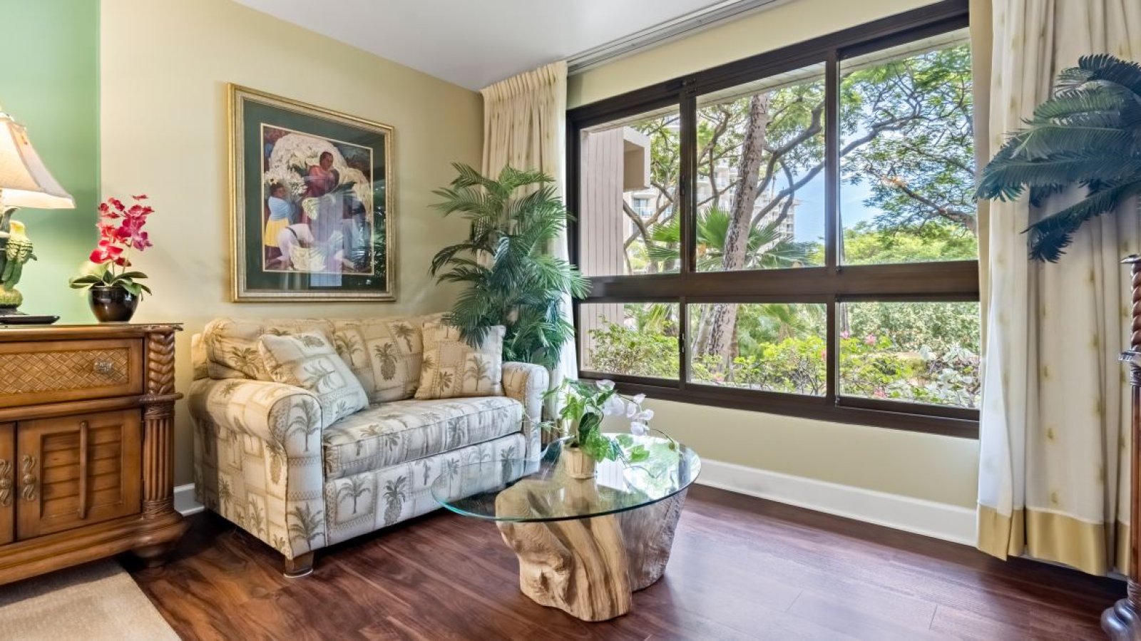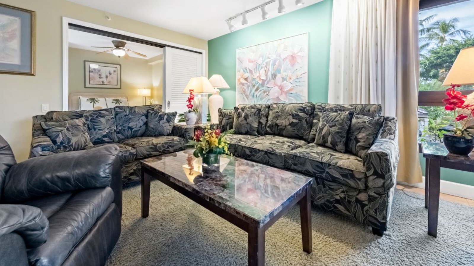 Welcome to Kaanapali Alii 222, a beautifully designed one-bedroom Garden View residence with a fully enclosed den that functions as a comfortable second bedroom. Located within the oceanfront Kaanapali Alii Resort, this inviting condo places you just steps from white sand beaches, resort pools, world-class dining, shopping, and championship golf. With generous living space and flexible sleeping accommodations, Residence 222 is an ideal choice for families and couples seeking a refined yet relaxed Maui escape.Living Spaces