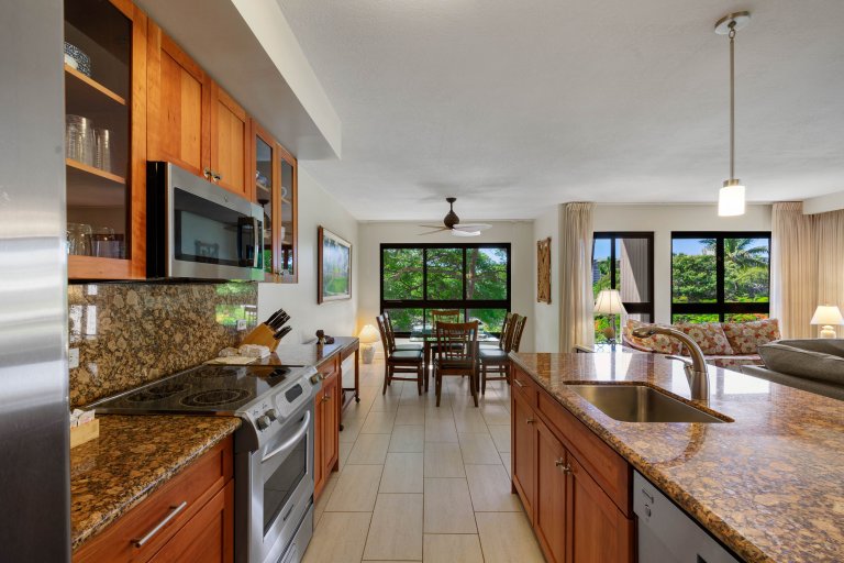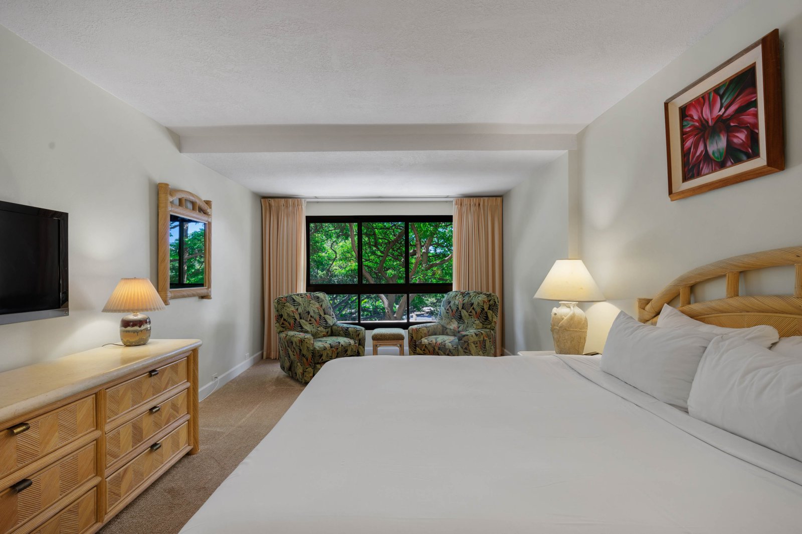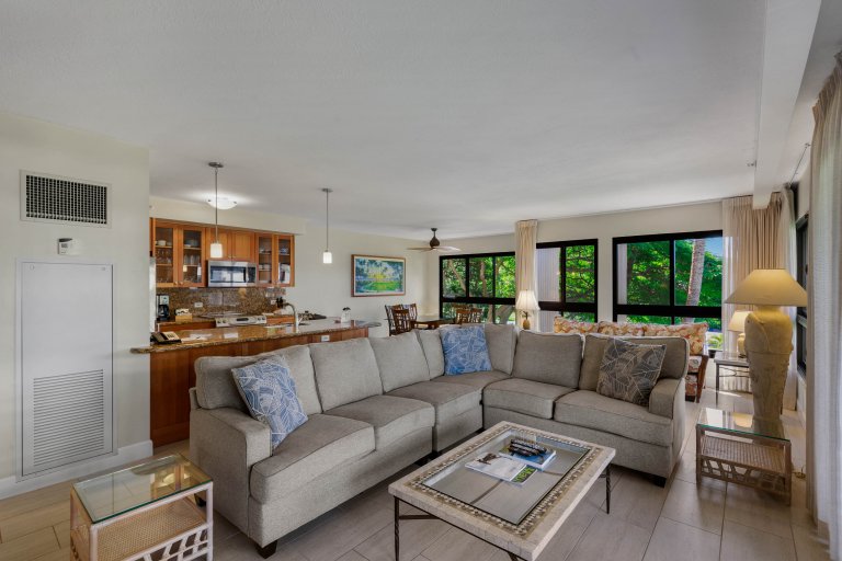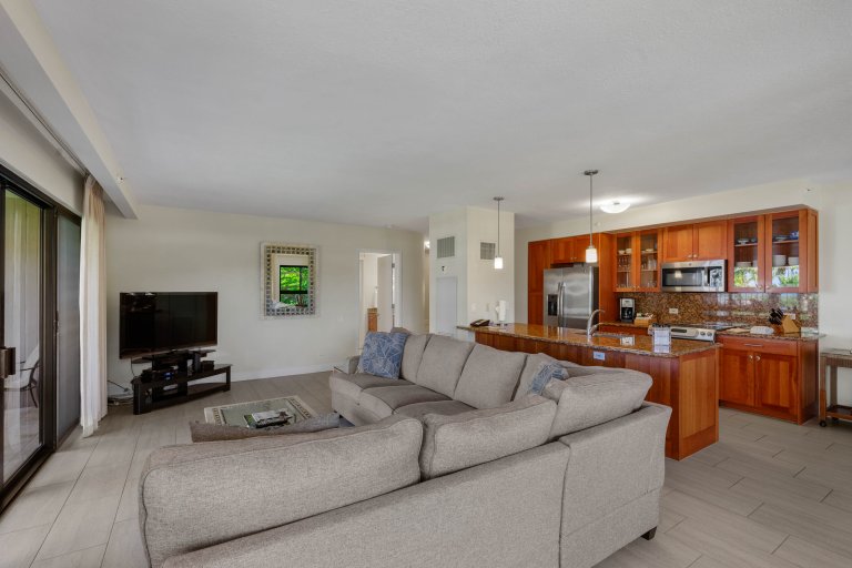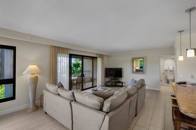 Welcome to Kaanapali Alii 245, an elegant ocean view residence located within Maui’s exclusive Kaanapali Alii Resort. Framed by lush tropical gardens and sweeping Pacific views, this spacious condo offers a refined blend of modern design and classic island style. Expansive windows and a generous private lanai invite guests to fully experience the beauty and serenity of Ka’anapali Beach.Living Spaces