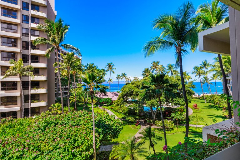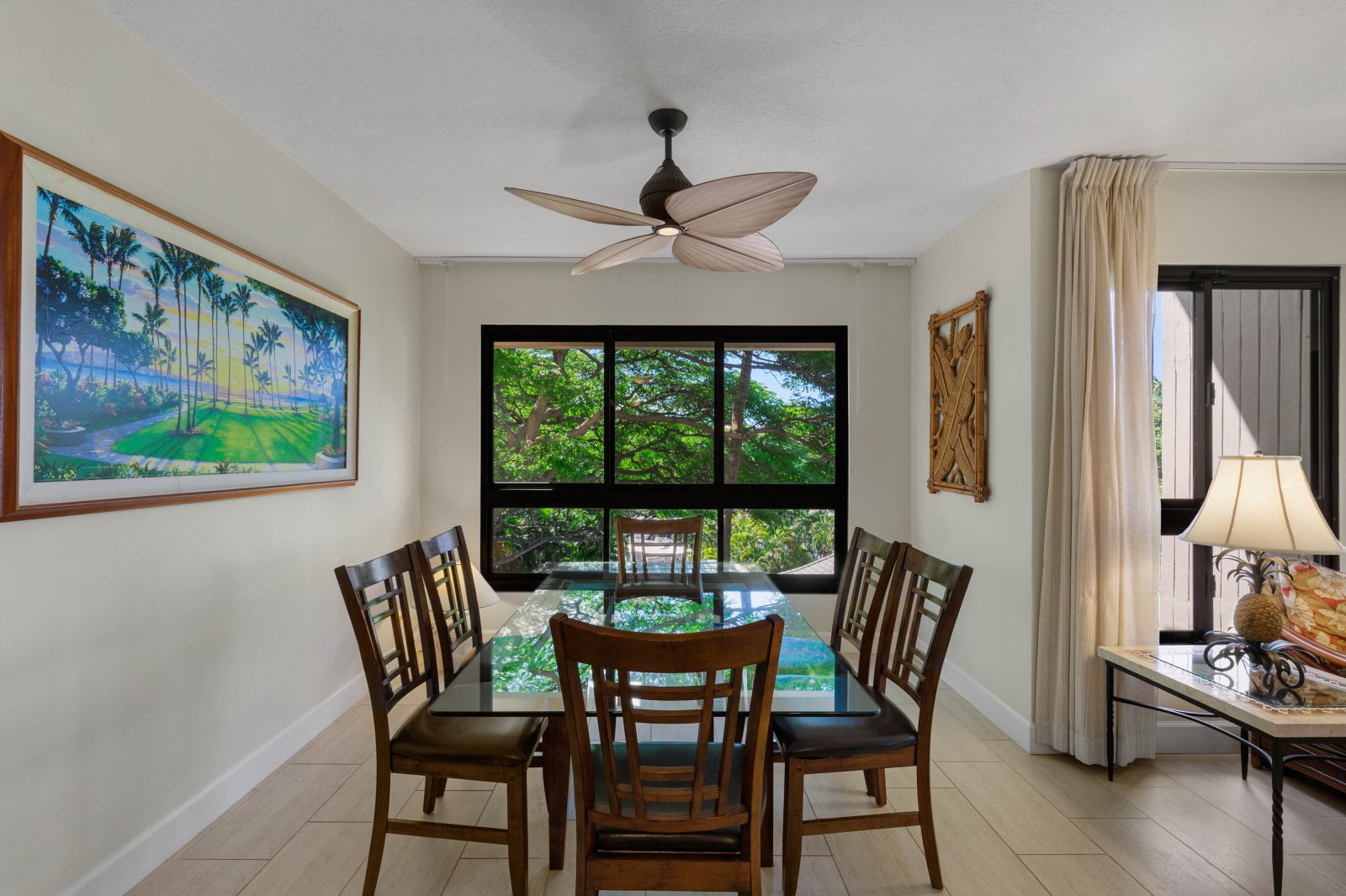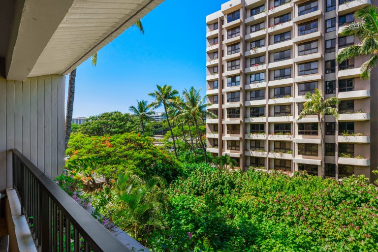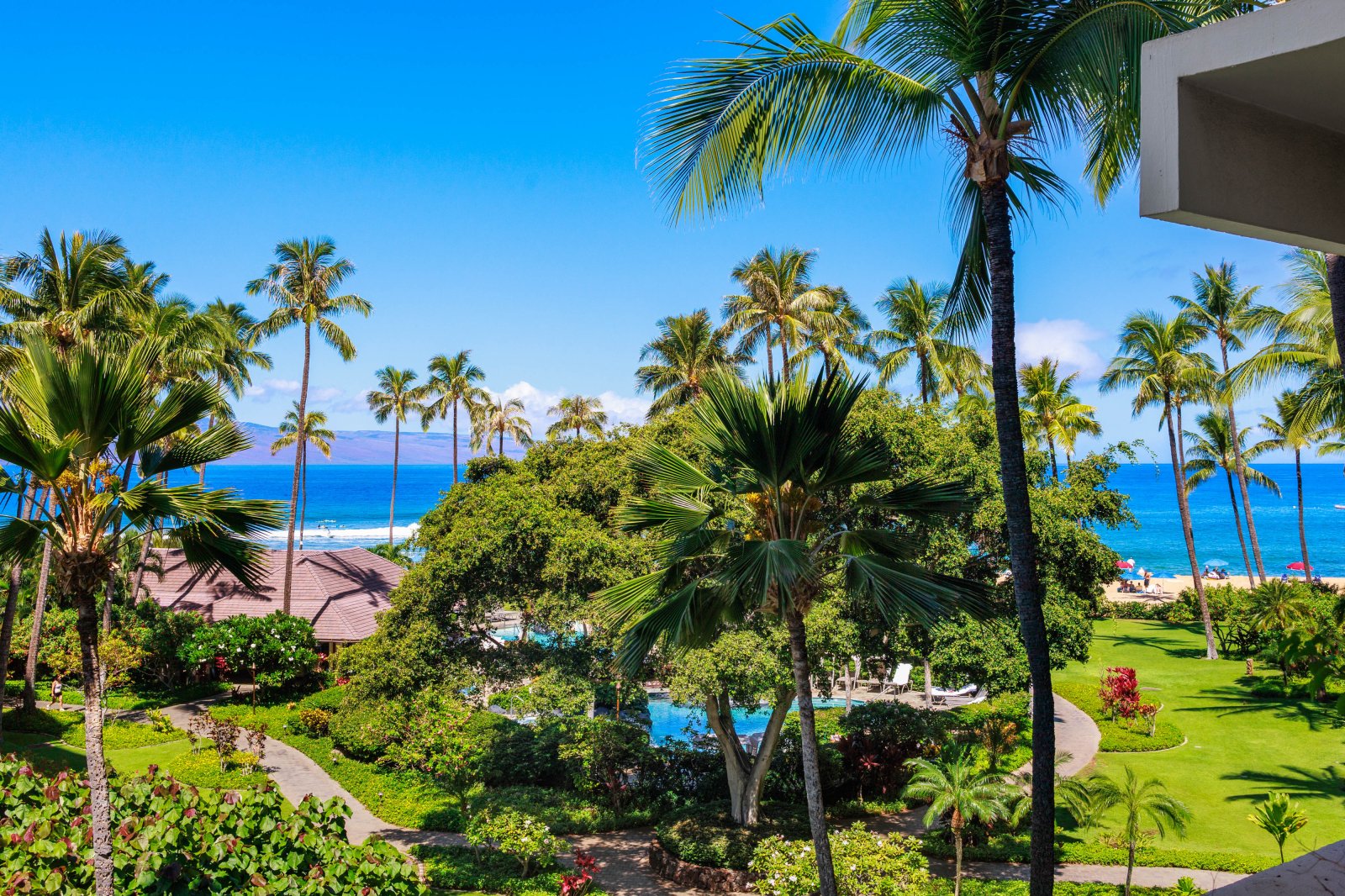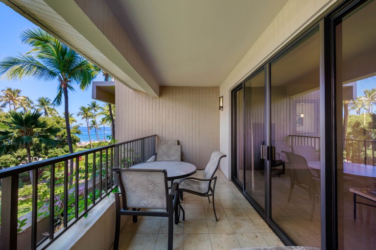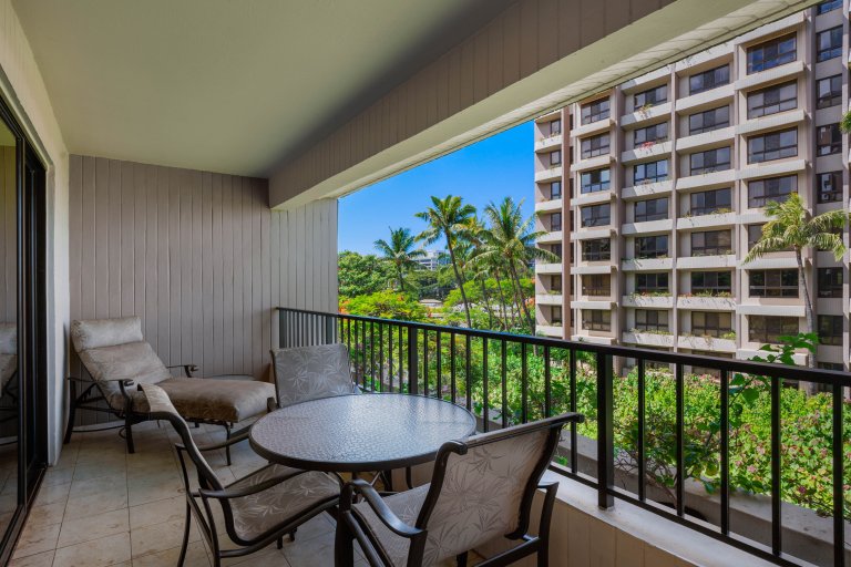 The private lanai features lounge seating and a dining table, offering an inviting setting to enjoy meals or relax while taking in ocean breezes and garden-framed Pacific views. Guests are just steps from the resort’s pools, tennis courts, barbecue stations, and the beach.Location