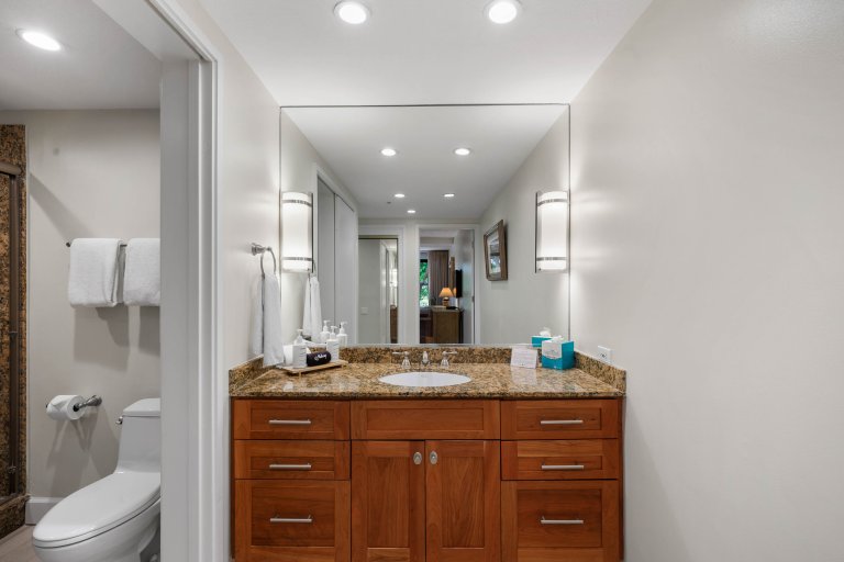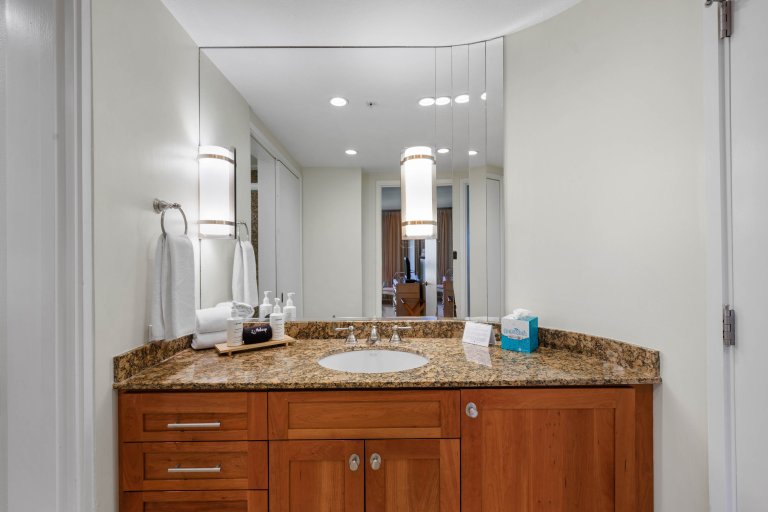 Residence 245 offers flexible sleeping arrangements and two well-appointed bathrooms.• Primary Bedroom Suite