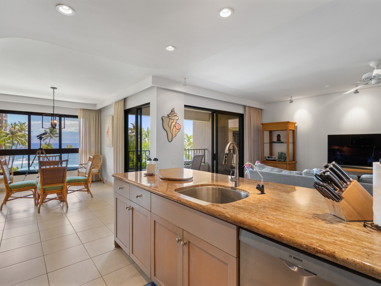 Step onto the private lanai to enjoy morning coffee or sunset cocktails while overlooking the resort’s tropical landscape and the ocean beyond. Guests have immediate access to the beachfront lawn and resort amenities just steps away.Resort Amenities Included