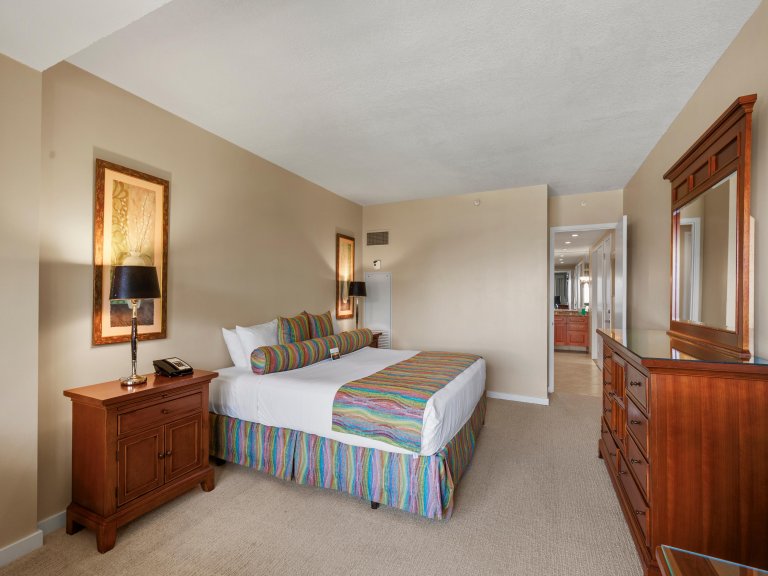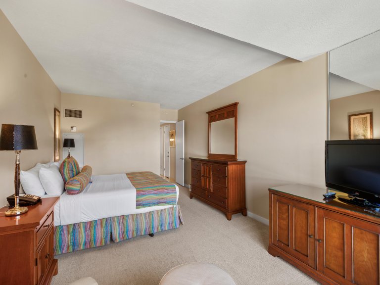 Bed: California King • Flat-Screen TV • Additional Seating