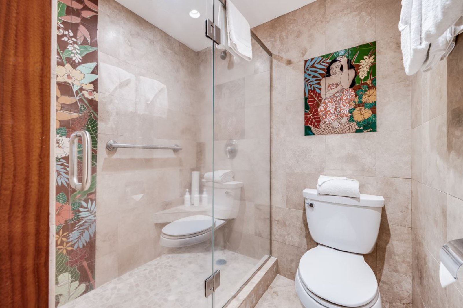 The open living and dining areas are thoughtfully designed to highlight island character and comfort. A striking wood accent wall, curated furnishings, and ocean-facing windows create a warm, sophisticated setting for relaxing or gathering with family and friends. The seamless layout allows the space to flow naturally into the kitchen and out to the lanai.Sleeping Accommodations | Up to 6 Guests