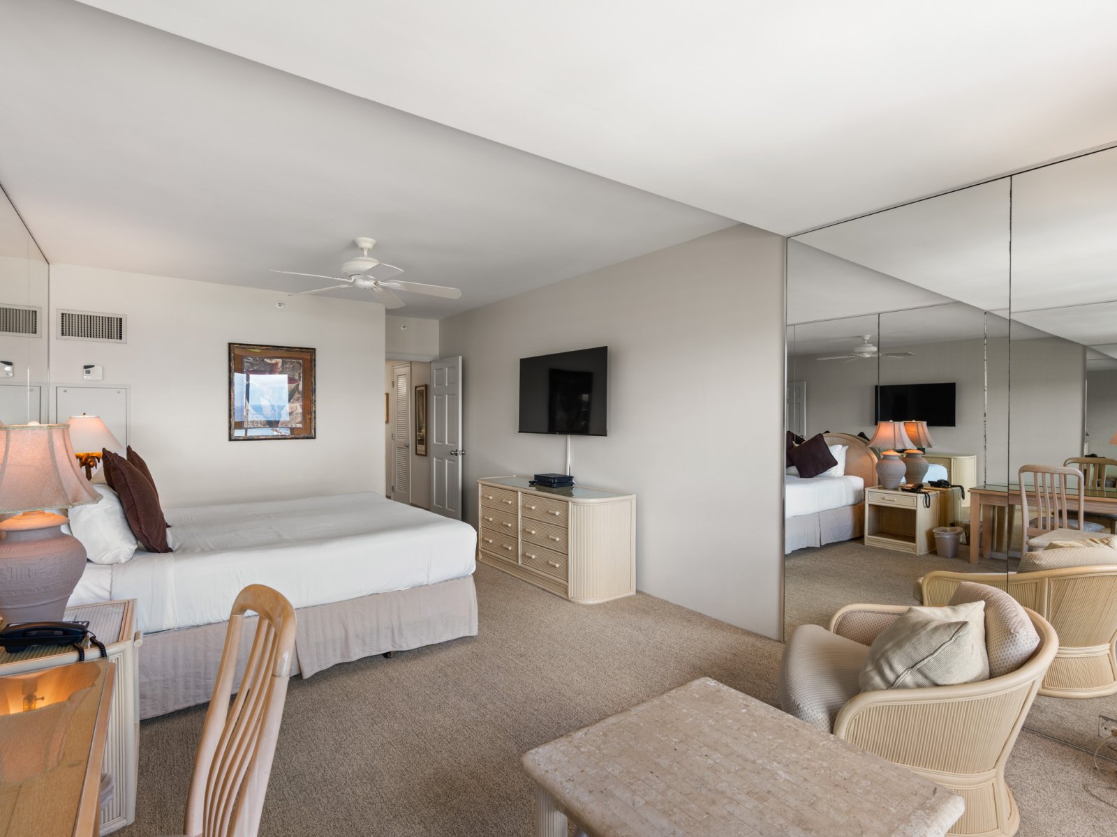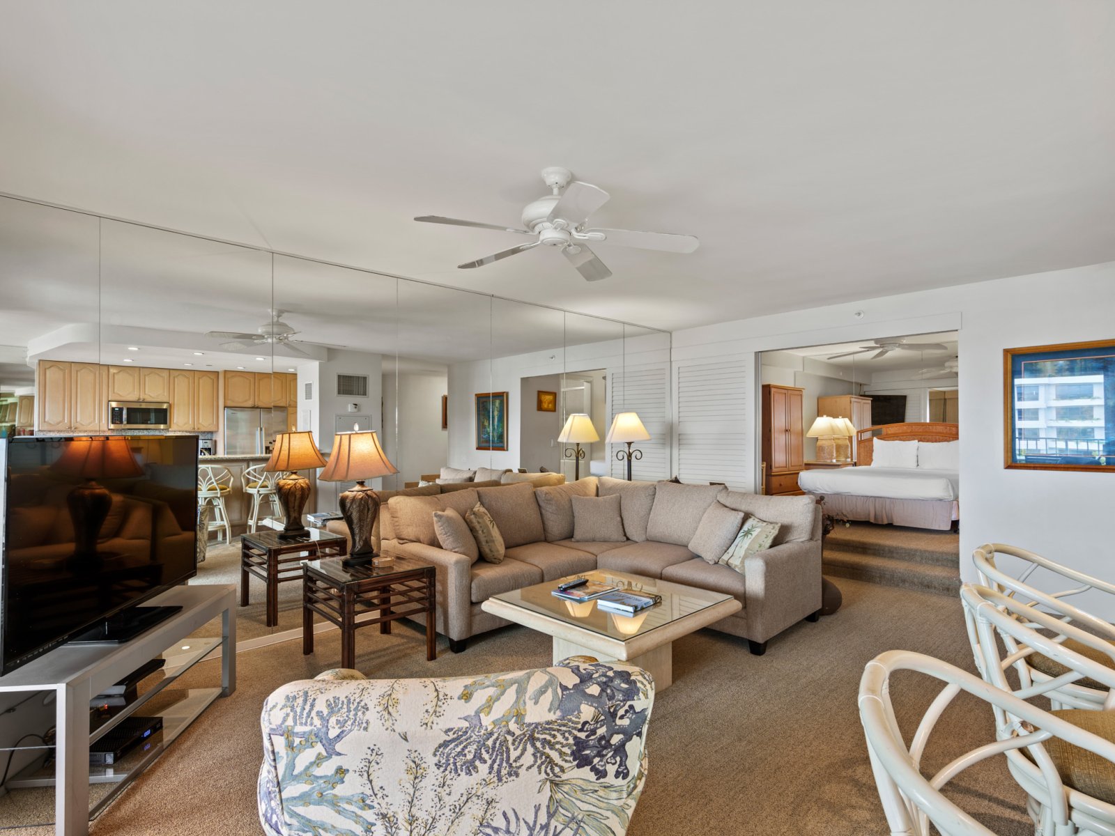 Welcome to Kaanapali Alii 3101, a beautifully appointed one-bedroom, two-bath ocean-view residence with a fully enclosed den that functions perfectly as a second bedroom. Set within the oceanfront Kaanapali Alii Resort, this light-filled condo offers sweeping views of the Pacific and iconic Ka'anapali Beach from its private lanai.Expansive windows and mirrored accents reflect Maui’s natural beauty throughout the space, while airy, island-inspired décor and comfortable furnishings create a relaxed yet refined atmosphere. Ideal for couples, families, or small groups, this residence blends comfort, elegance, and unforgettable scenery.