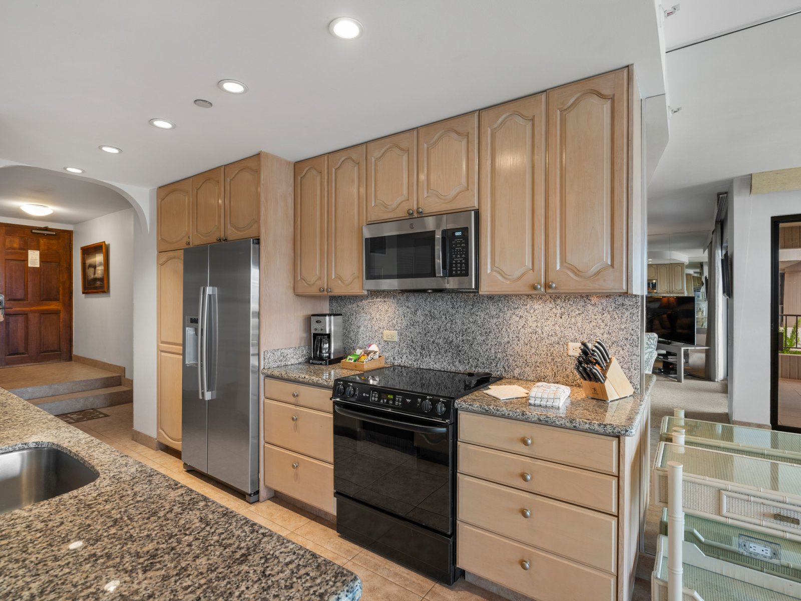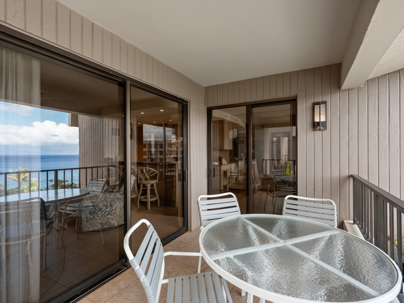 Step onto your private lanai to savor panoramic ocean views, morning coffee, or sunset cocktails. With seating and a table, this outdoor space is ideal for soaking in the sights and sounds of Maui’s coastline.Residence Features