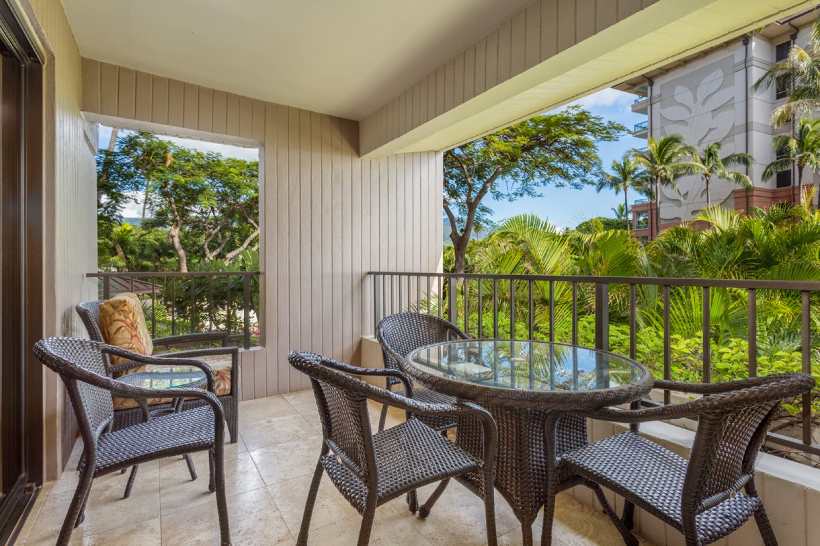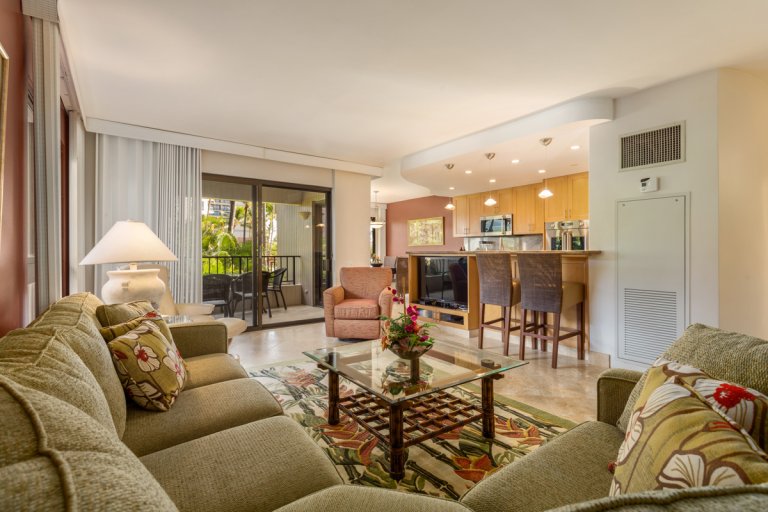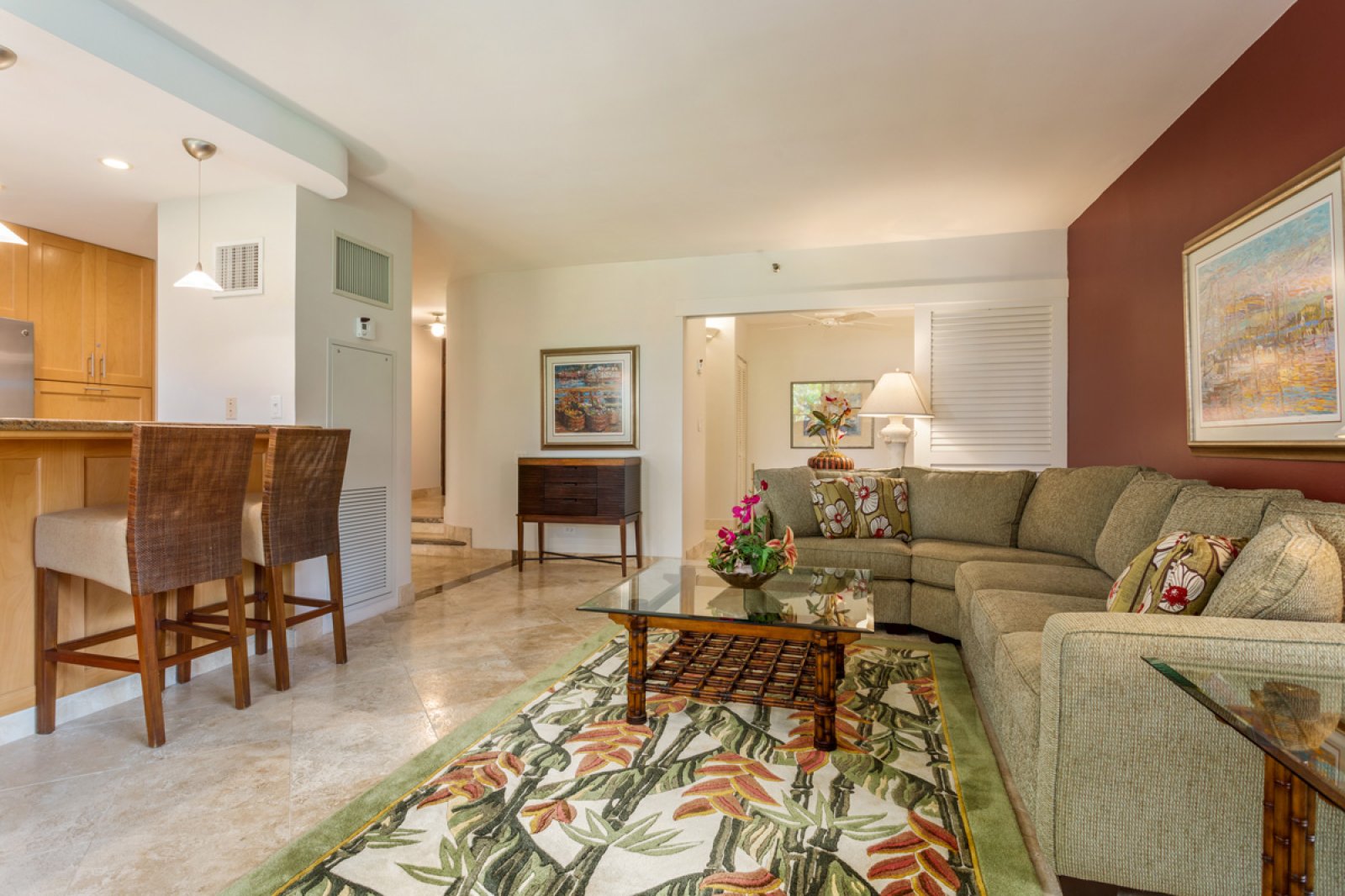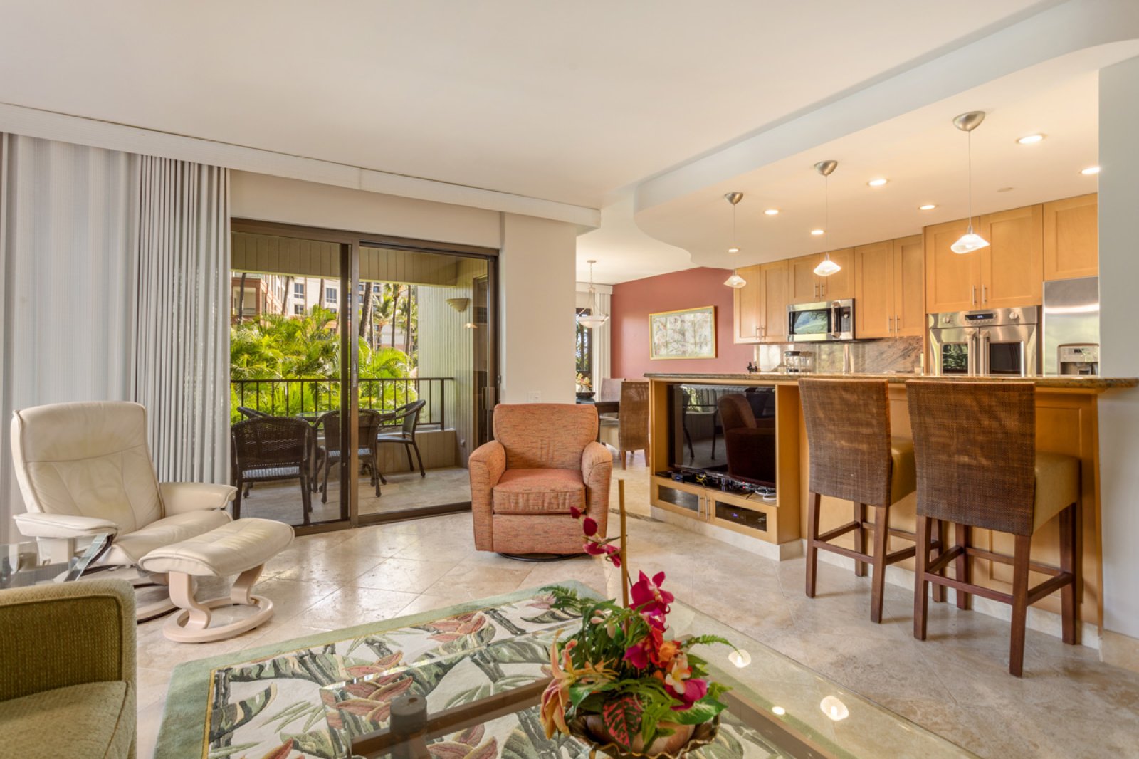 Welcome to Condo 322, a thoughtfully designed garden-view residence located within the oceanfront setting of Kaʻanapali Alii Resort. Overlooking lush tropical landscaping, this elegant condominium offers a calm, private atmosphere paired with polished interiors and comfortable living spaces. It is an ideal retreat for guests seeking understated luxury just steps from the beach.The interior design balances contemporary furnishings with warm, rich accents, creating a space that feels both sophisticated and welcoming.