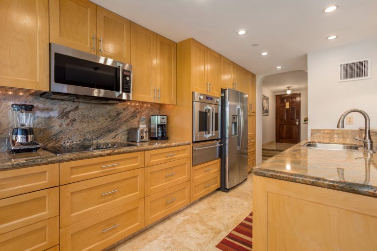 Fully Equipped Kitchen Stainless Steel Appliances, Dishwasher, Oven, Coffee Maker • Blender • Bar Seating - for 2 • Marble Countertop