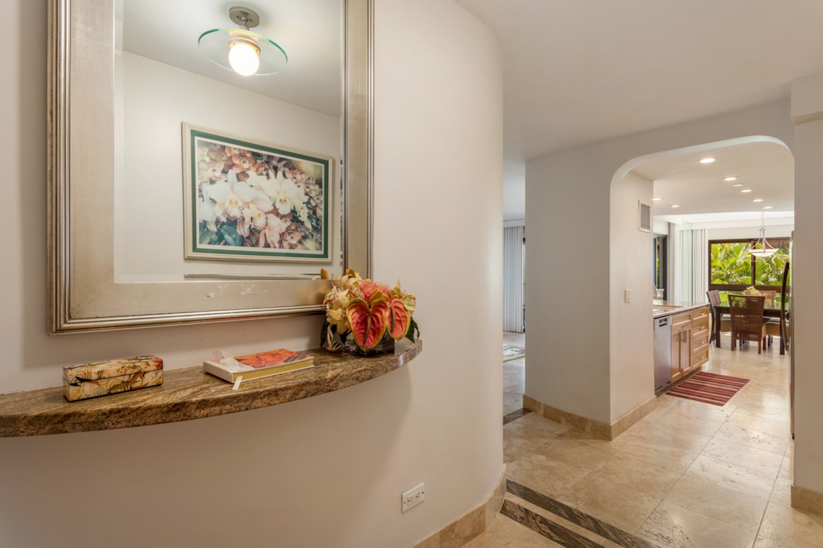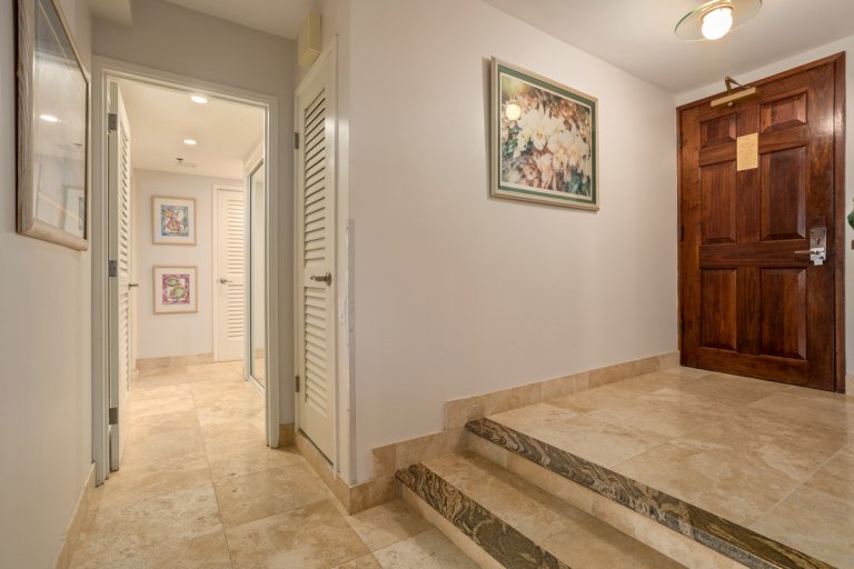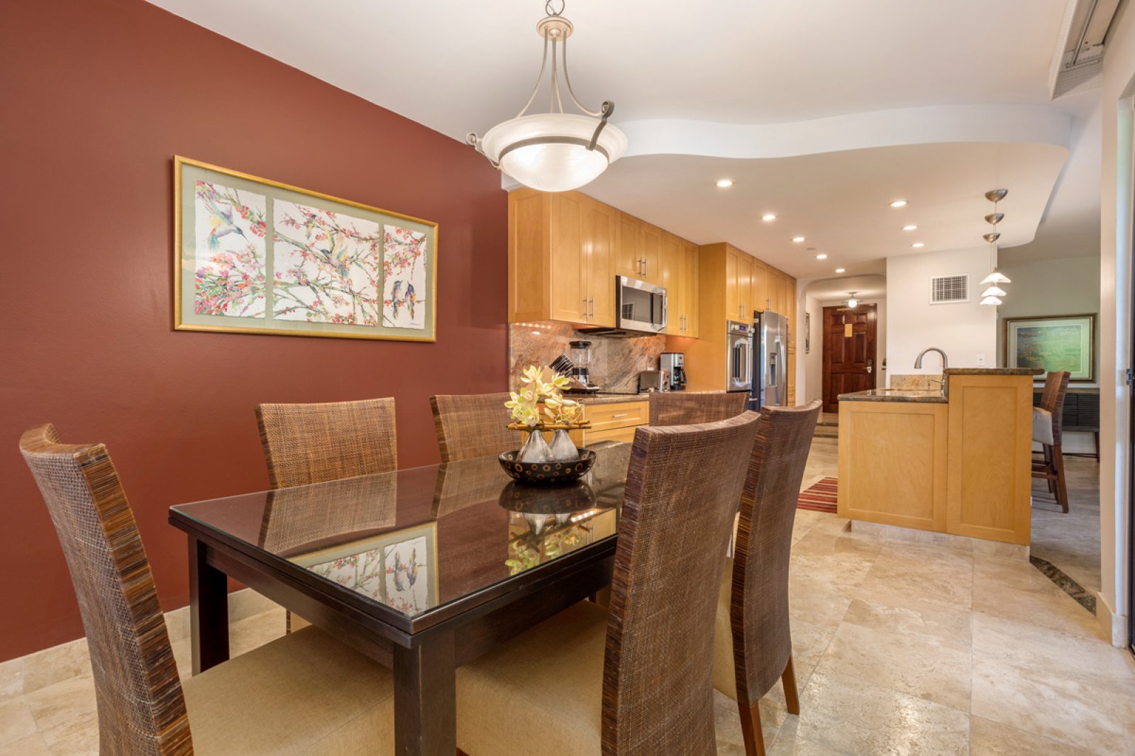 The private lanai extends the living space outdoors and overlooks manicured tropical gardens. With seating for four, it is well suited for morning coffee, afternoon relaxation, or casual evening dining in a serene setting.Residence Features