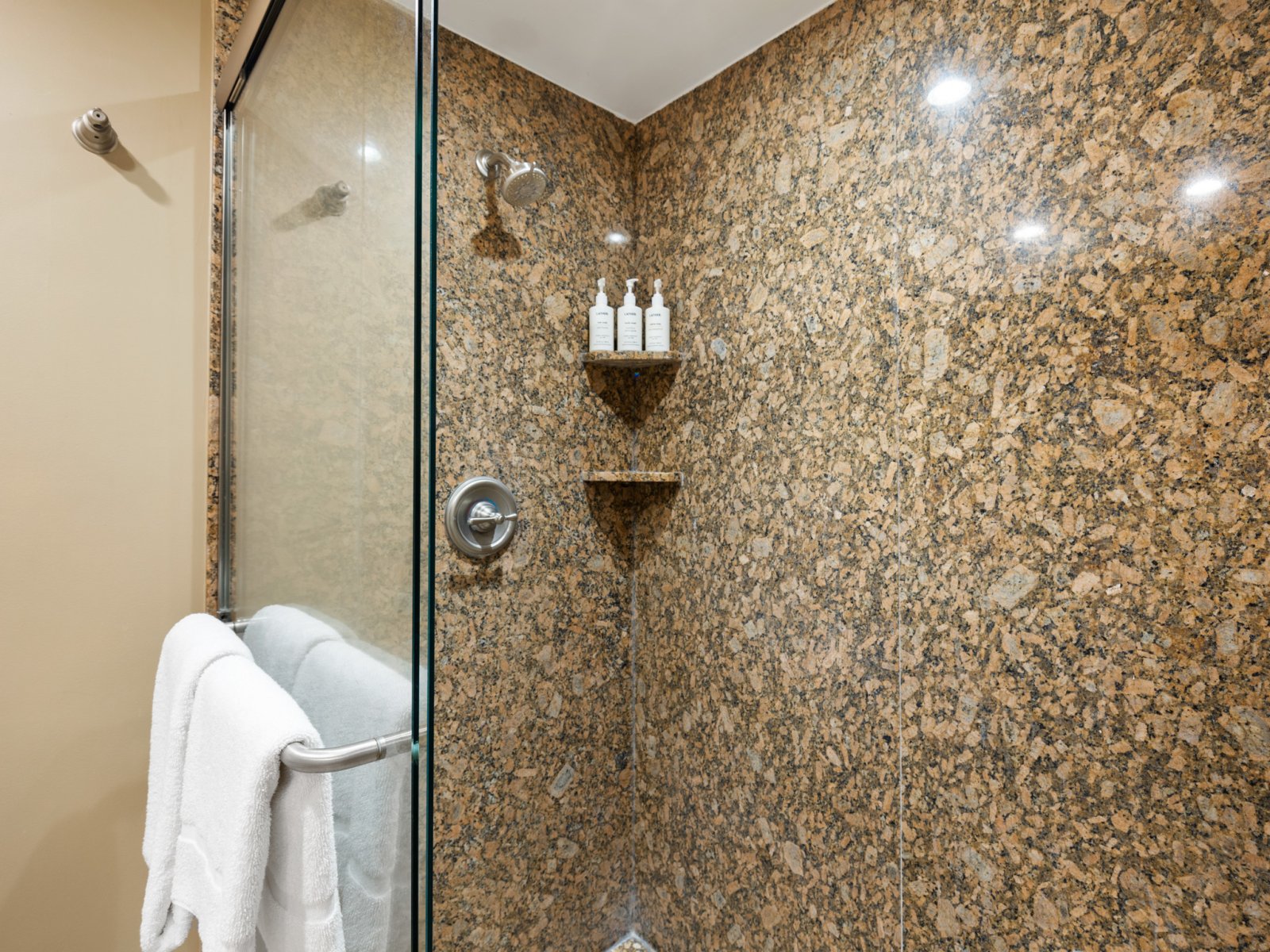 Bed: King Bed • En-Suite Bath with Shower • TV • Additional Seating
