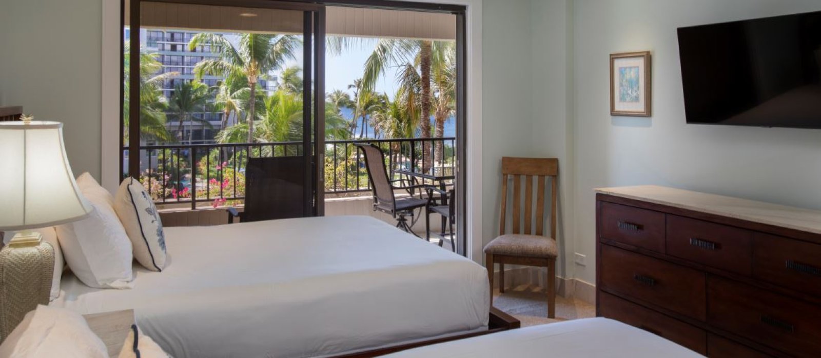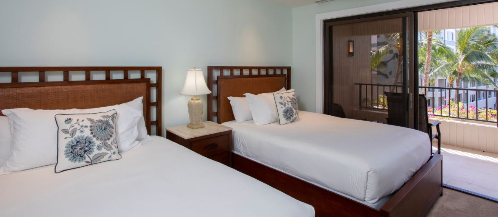 Two full-size beds with direct access to the main lanai and beautiful ocean views to wake up to each morning.