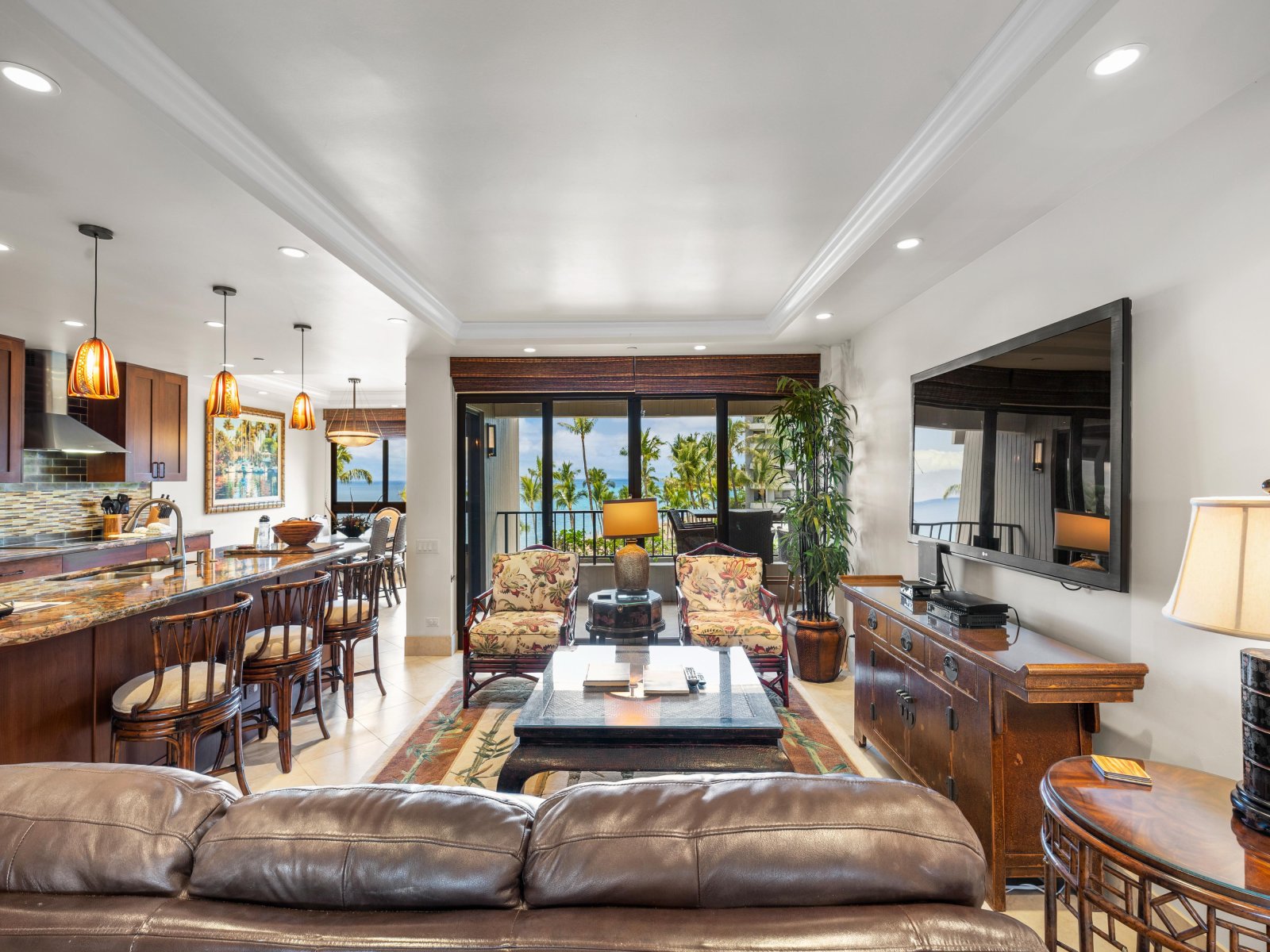Welcome to Residence 363, a beautifully appointed two-bedroom condominium at Kaʻanapali Alii Resort. This deluxe ocean-view retreat showcases sweeping views of the Pacific Ocean and the resort’s lush, manicured gardens. Expansive windows bathe the interior in natural light, while the spacious private lanai invites you to relax and enjoy Maui’s gentle island breezes.Designed with an open-concept layout, the residence features rich dark wood accents and stylish, comfortable furnishings throughout. Whether you’re enjoying quiet mornings or unwinding after a beach day, Residence 363 offers a refined yet welcoming atmosphere for an unforgettable Maui escape.