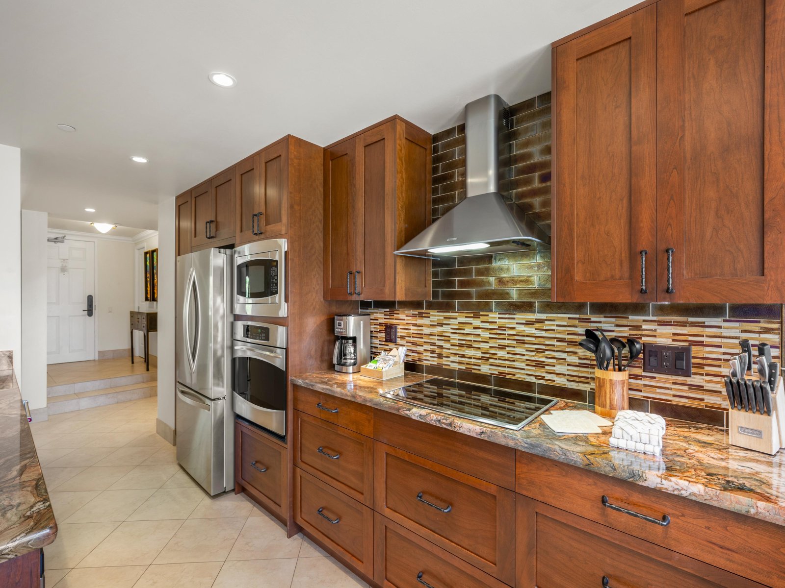 Fully Equipped Kitchen Stainless Steel Appliances, Dishwasher, Oven, Coffee Maker • Microwave • Refrigerator • Stove • Bar Seating - for 3