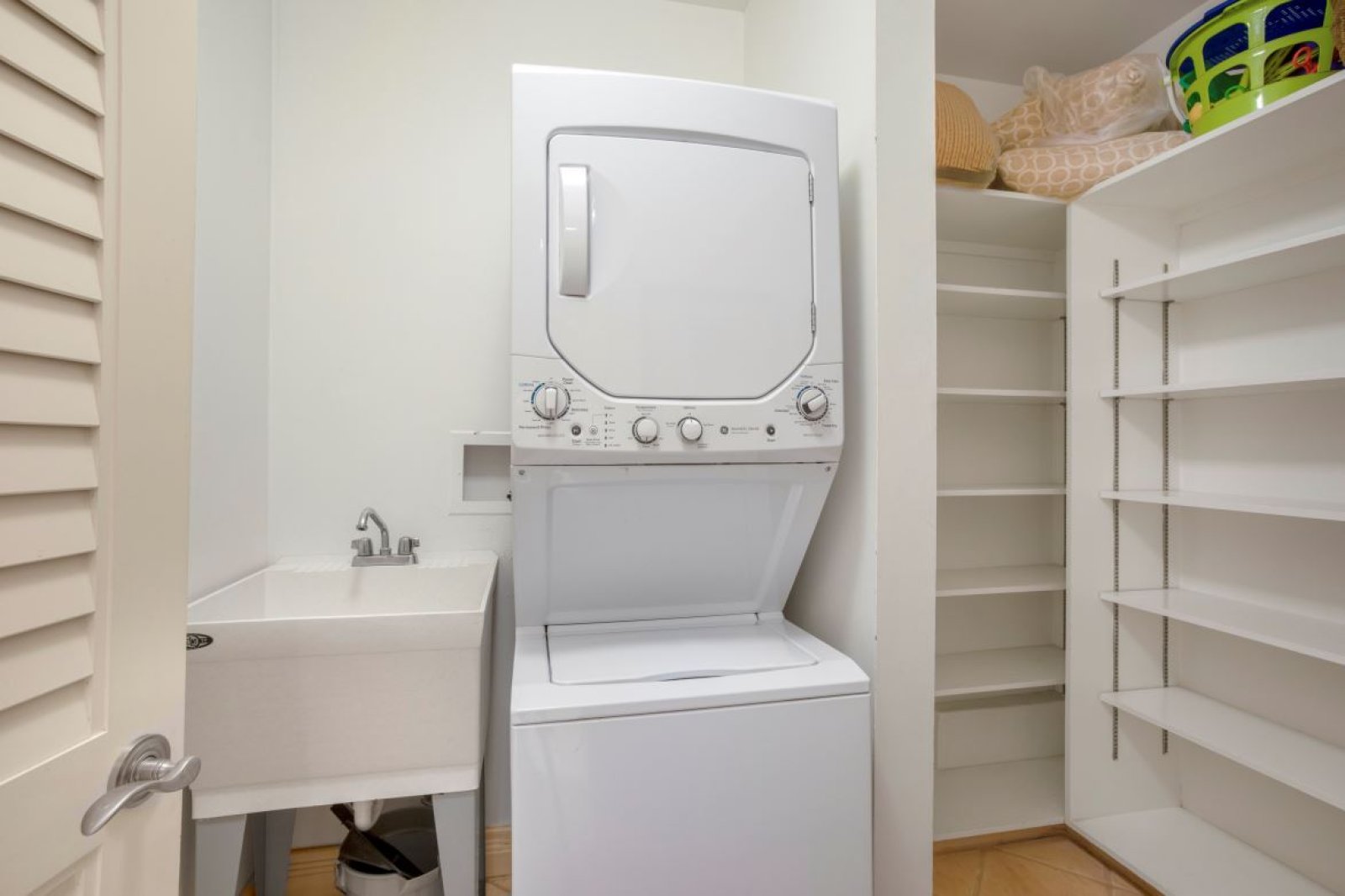 The fully equipped gourmet kitchen features granite countertops, stainless steel appliances, and an island with bar seating for two. The kitchen opens to the living area, making it easy to gather while meals are prepared. A dedicated dining area seats four, with an additional outdoor dining table for four on the lanai.Outdoor Living