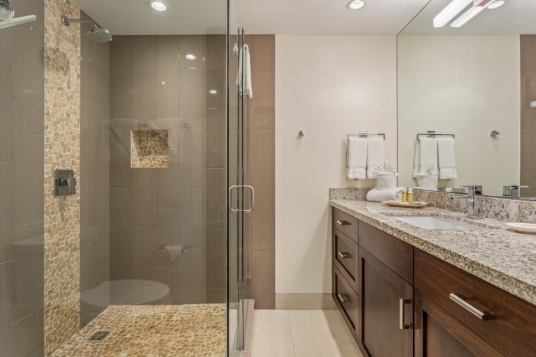Bed: King Bed • En-Suite Bath with Walk-In Shower and Dual Vanity