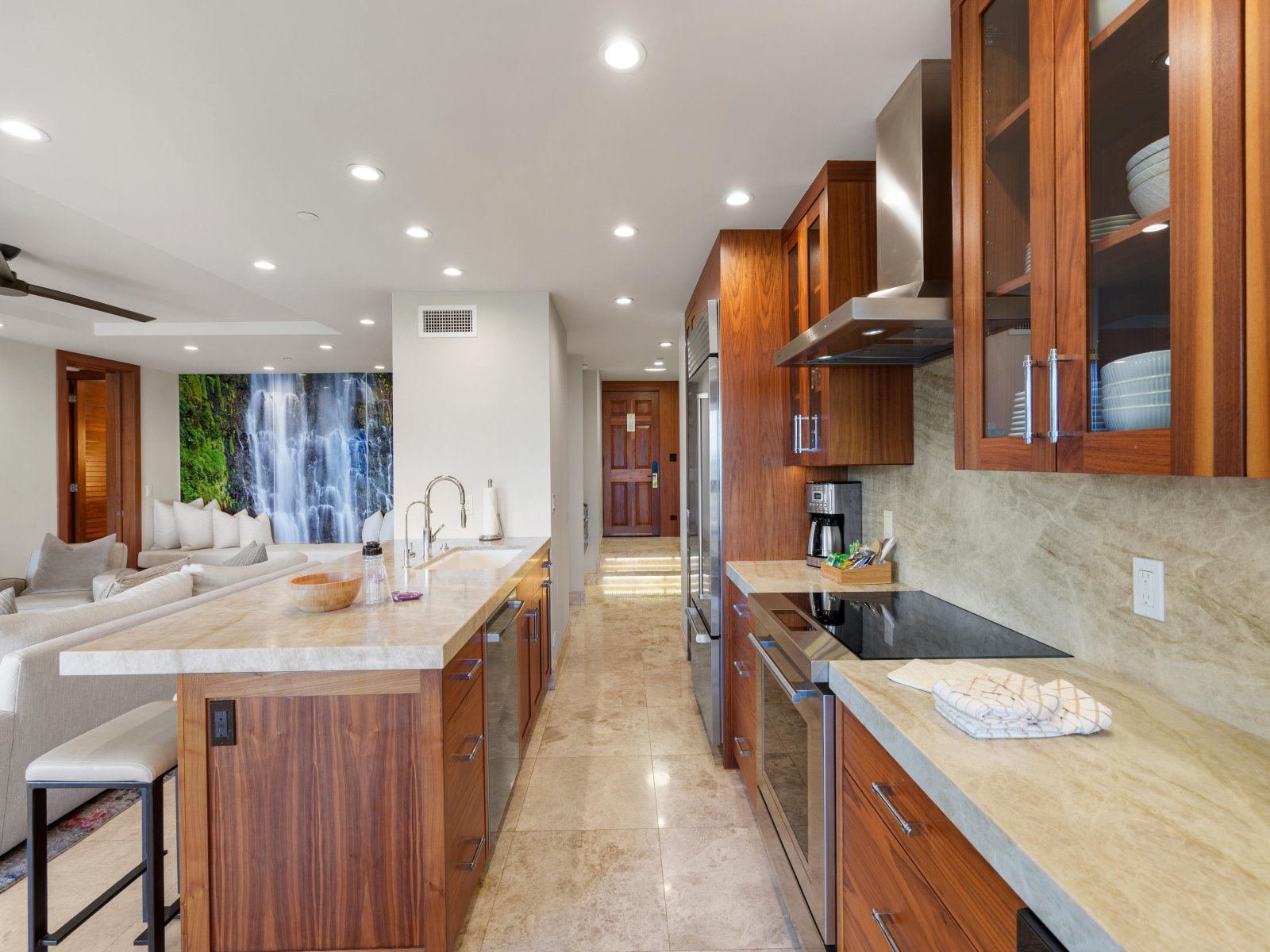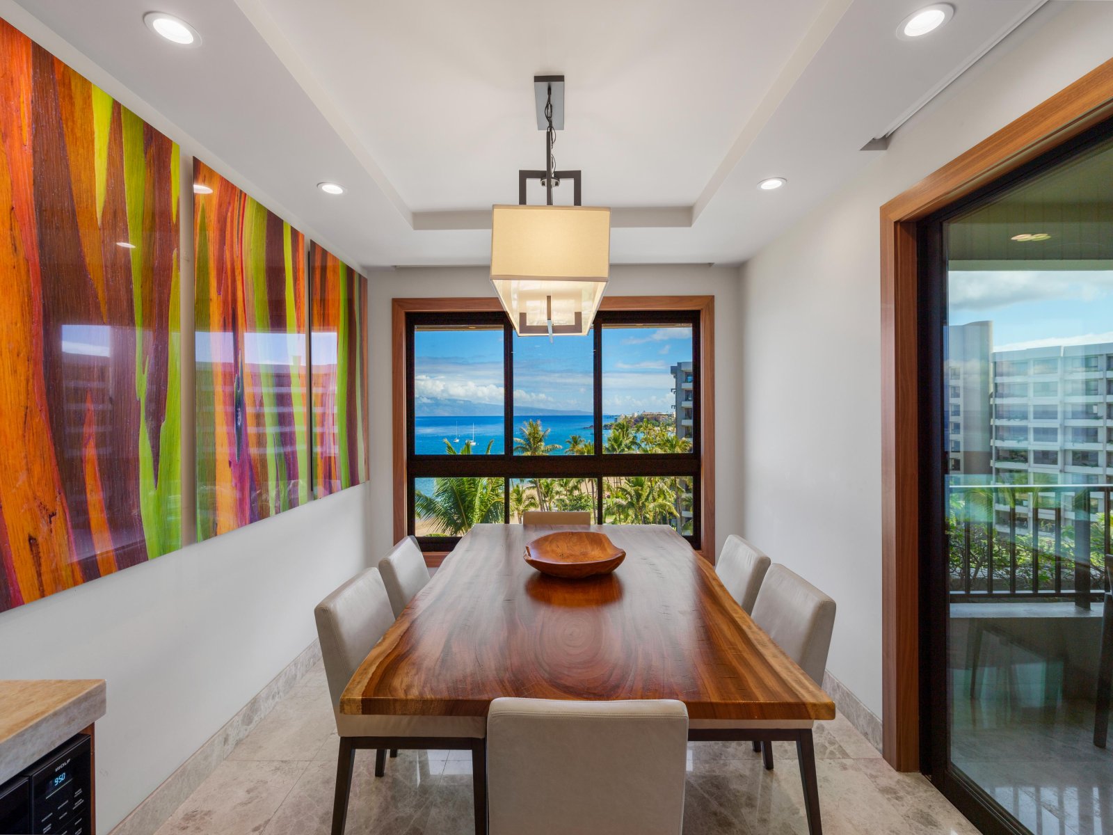 Welcome to Residence 393, a platinum-rated two-bedroom oceanview condominium set within the oceanfront grounds of Kaʻanapali Alii Resort. This refined Maui retreat offers clear, expansive views of the Pacific Ocean stretching to the horizon, paired with direct sightlines to Kaʻanapali’s white-sand shoreline. Floor-to-ceiling windows and a spacious private lanai invite natural light and island breezes throughout, creating a seamless connection to the surrounding coastal beauty.Spanning approximately 1,723 square feet, the residence is thoughtfully designed with colorful island-inspired décor. Waterfall photography, custom murals, and tropical accents evoke Hawaii’s lush landscapes, while the spacious layout and refined finishes provide a calm and welcoming atmosphere ideal for relaxation.