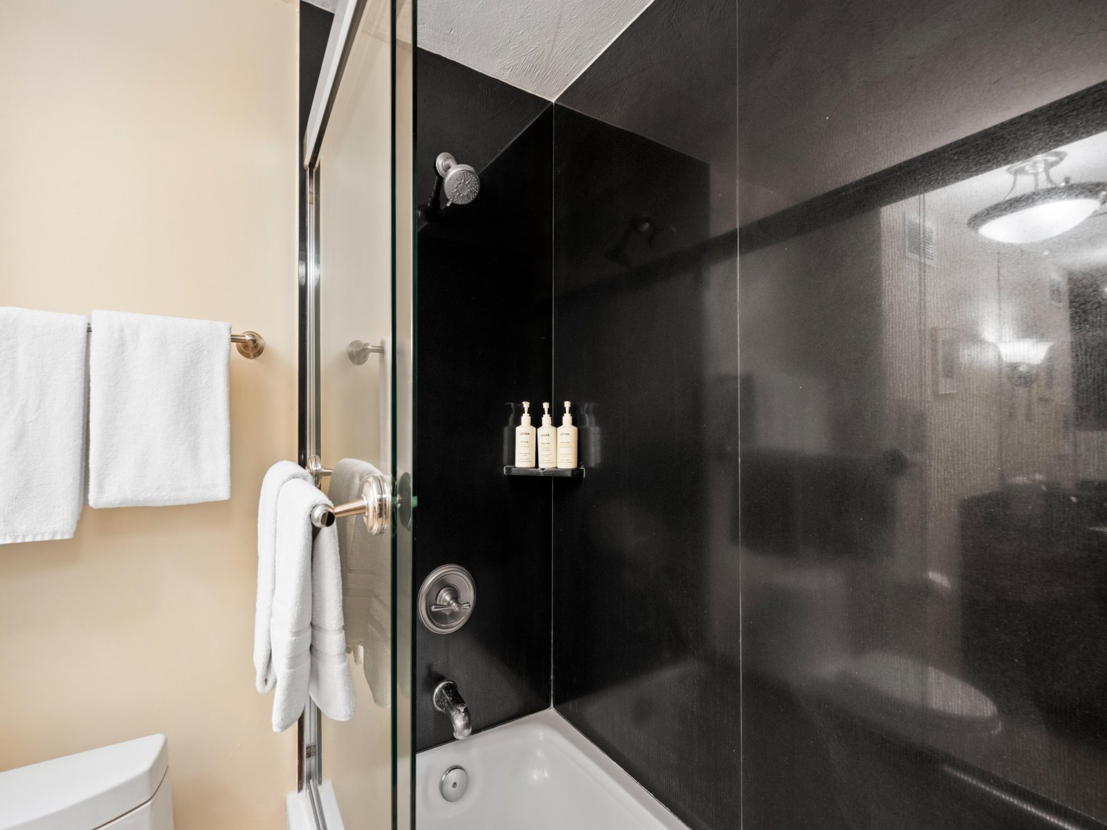 - One walk-in shower and one shower and tub combination
