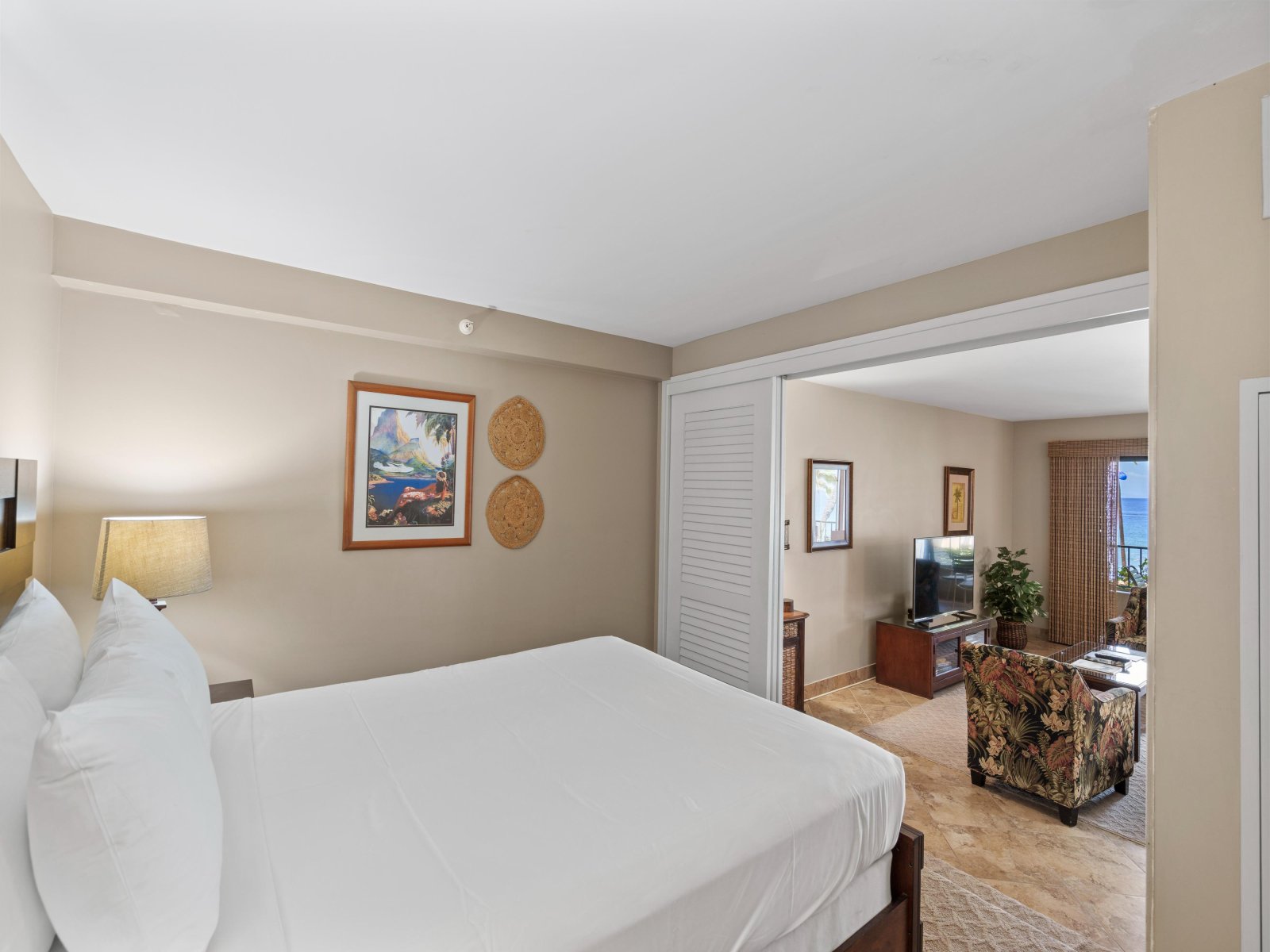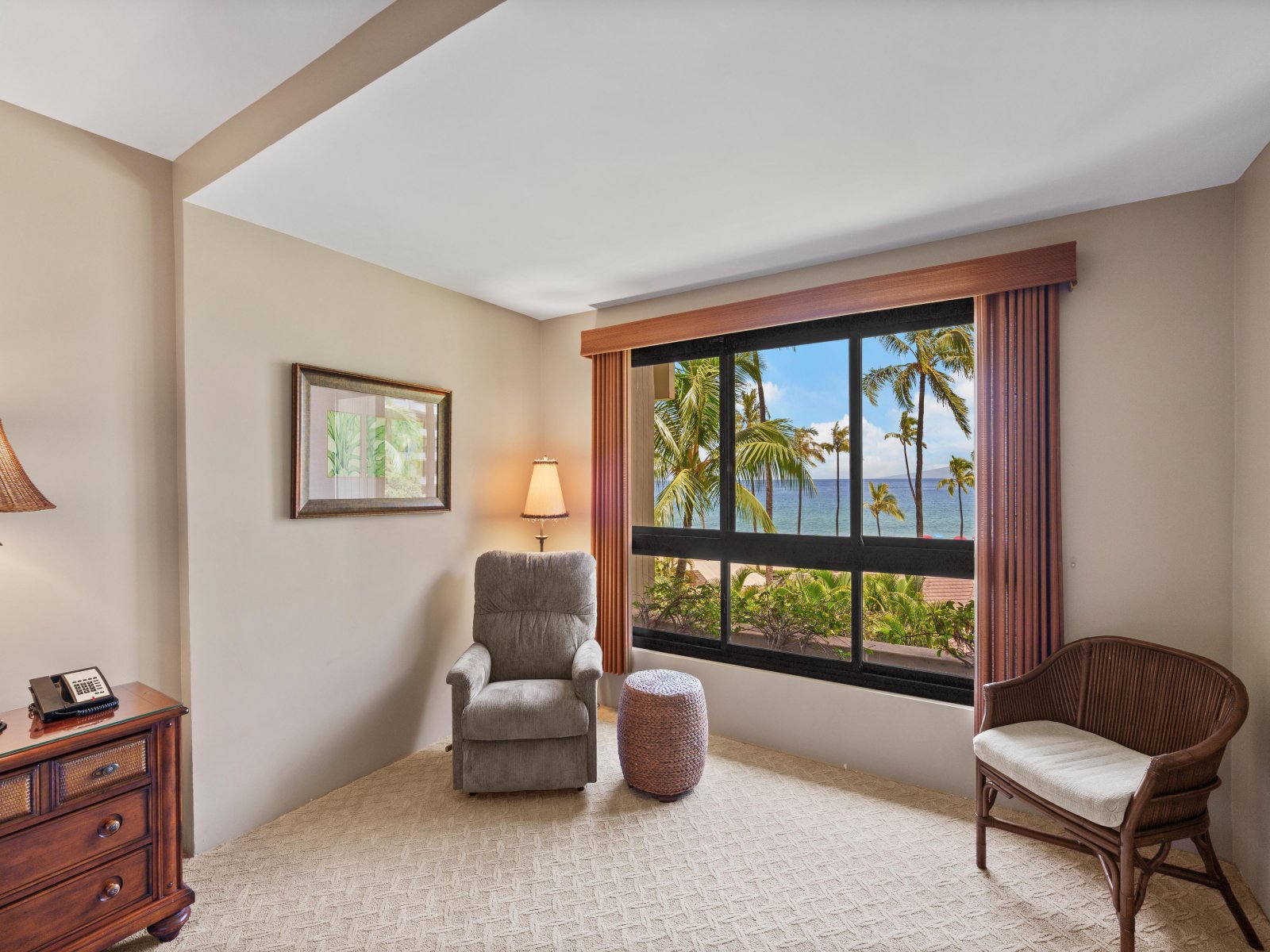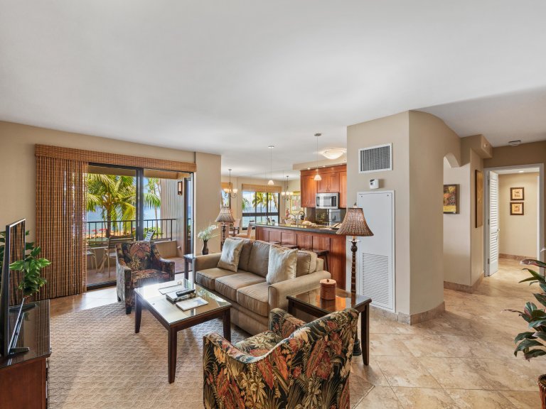 Residence 442 is a beautifully appointed ocean-view home located within the exclusive Kaʻanapali Alii Resort. This one-bedroom residence includes a fully enclosed den that functions comfortably as a second bedroom, creating an ideal layout for couples, families, or small groups seeking refined beachfront living. From the private lanai and expansive windows, guests enjoy sparkling views of the Pacific Ocean, framed by swaying palms and the white-sand shoreline.Natural light fills the interiors, enhancing the warm and inviting atmosphere throughout. Eye-level ocean views and a thoughtfully designed layout allow guests to fully immerse themselves in the beauty of Kaʻanapali Beach from the comfort of their residence.