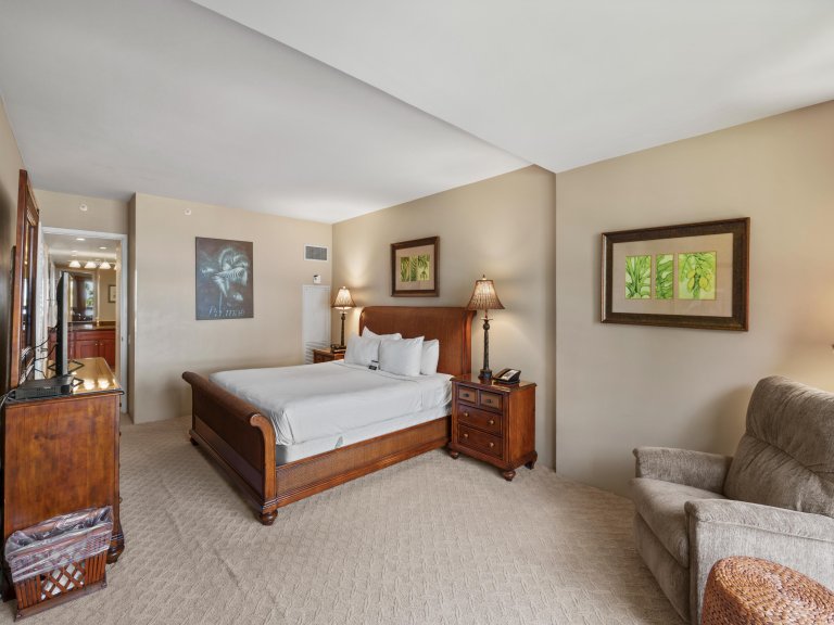 Bed: California King • En-Suite Bath with Shower • Flat-Screen, Cable TV • Additional Seating