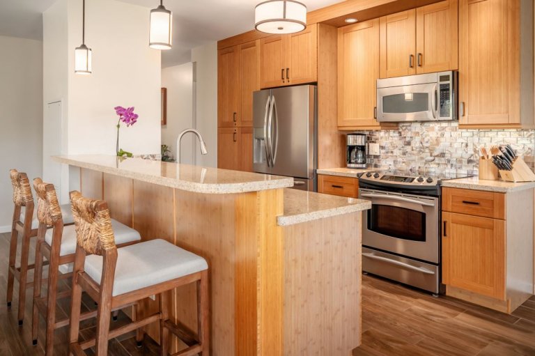 Step onto the private garden-view lanai for relaxed outdoor dining or a quiet moment surrounded by tropical greenery. Guests are only moments from Kaʻanapali Beach, resort pools, and ocean activities. Beachfront barbecue stations are available for grilling fresh local seafood with assistance from the resort’s Grill Master.Residence Features
