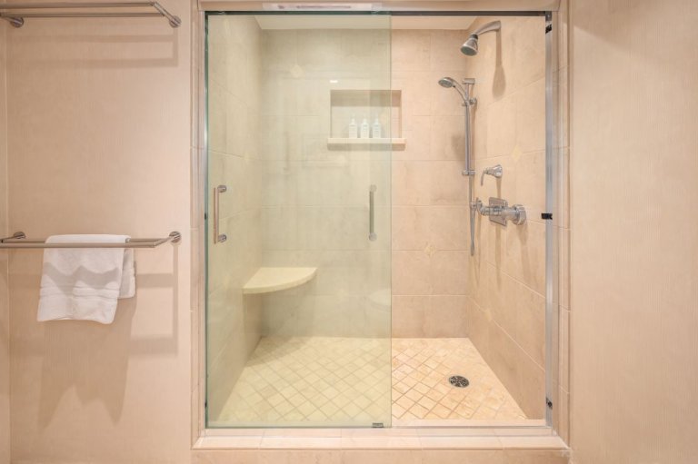 Bed: King Bed • En-Suite Bath with Shower • Sofa • Additional Seating • Desk • Flat-Screen TV