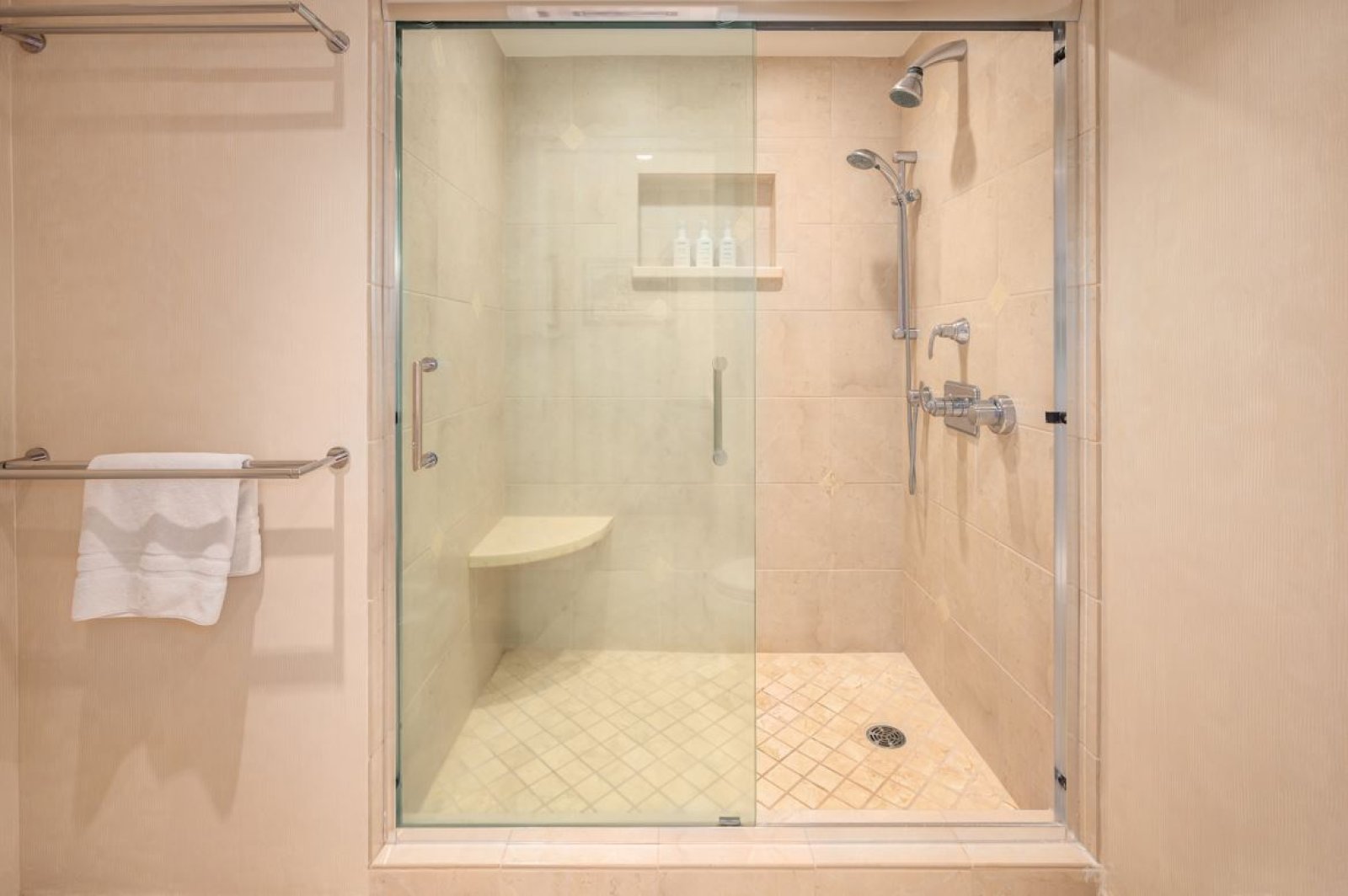 • Primary BedroomKing bed with a sitting area, sofa, and ottoman. A dedicated work desk provides a quiet space for remote work if needed. The en-suite bathroom features a walk-in shower and custom bidet.