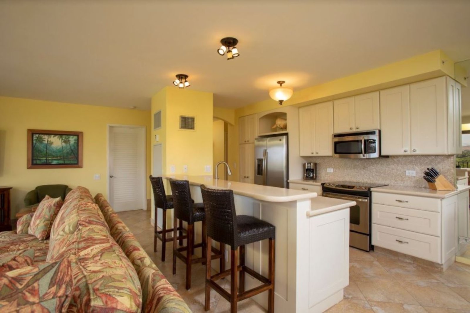- Island with bar seating for three, perfect for appetizers or cocktails