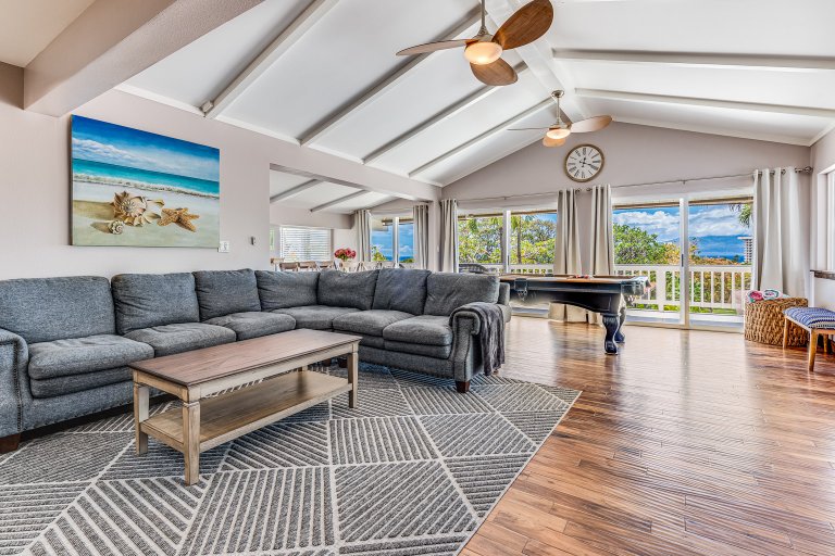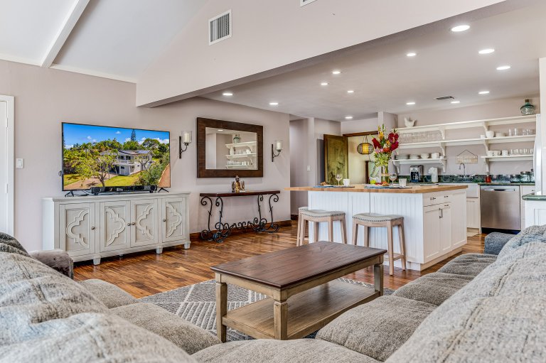 three-bathroom vacation rental on the island of Maui, situated in the heart of