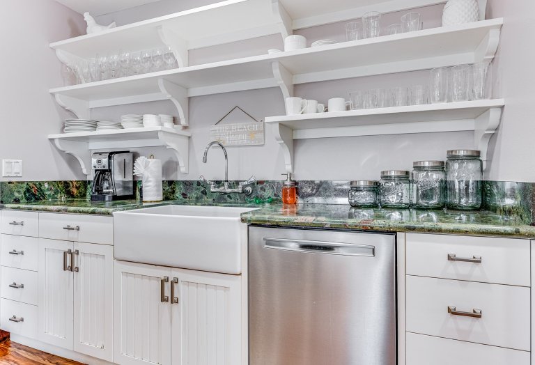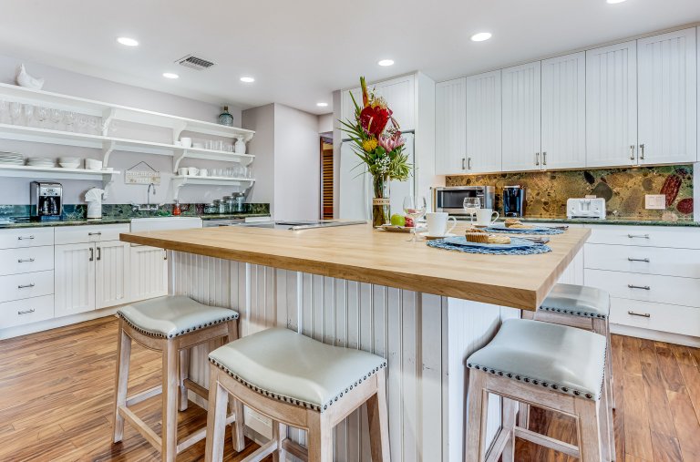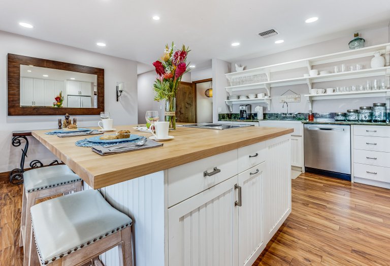 Fully Equipped Kitchen Dishwasher, Glass Cooktop Stove, Oven, Coffee Maker • Center Island • Bar Seating - for 4 • Granite Counters • Blender • Coffee Grinder