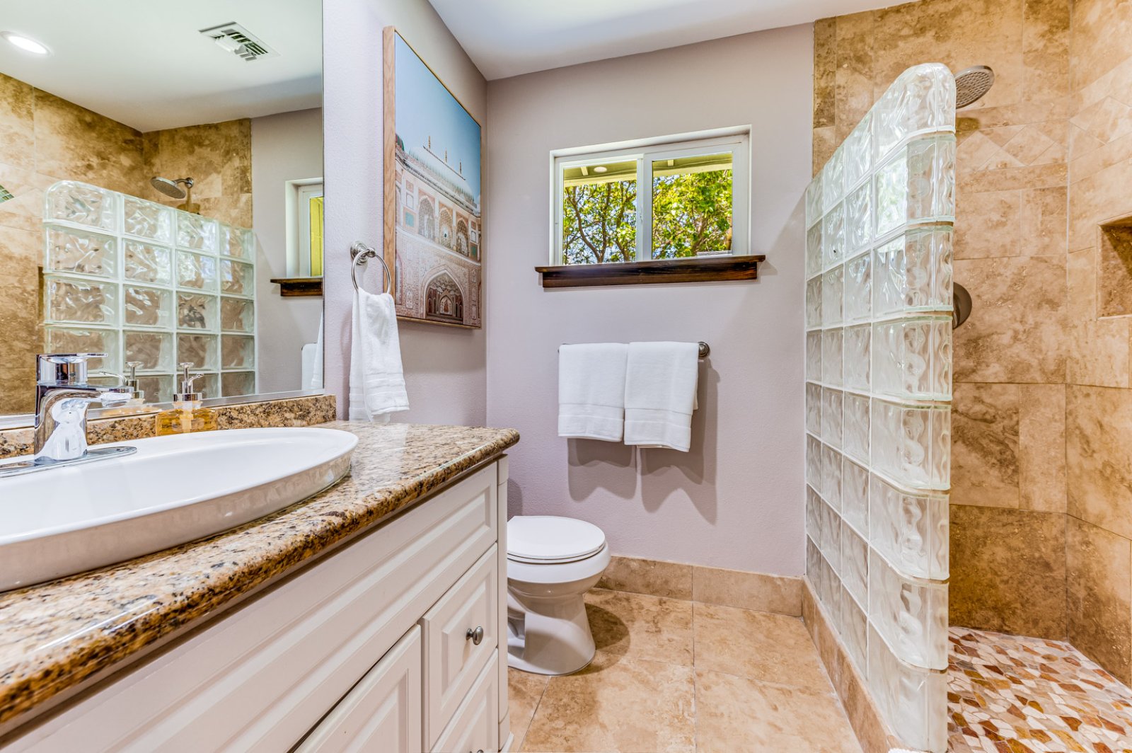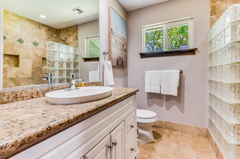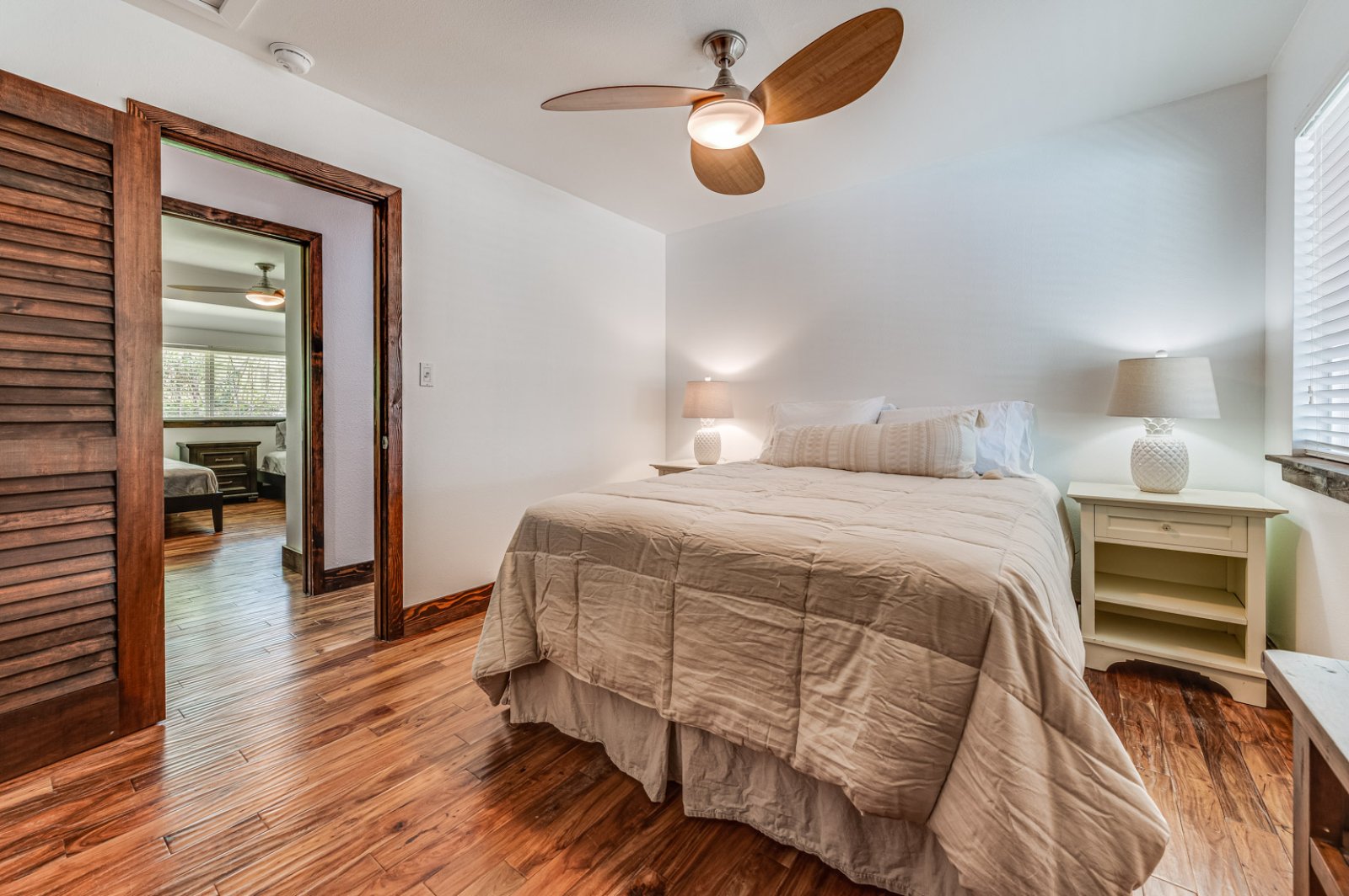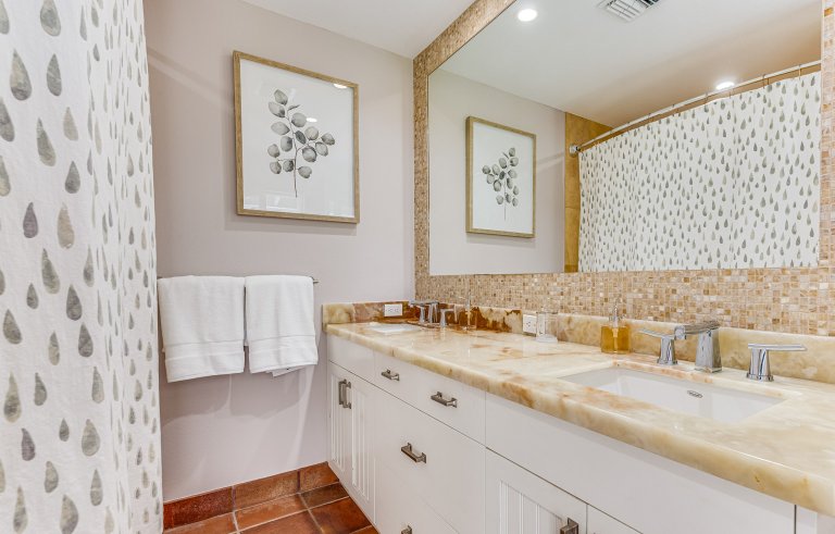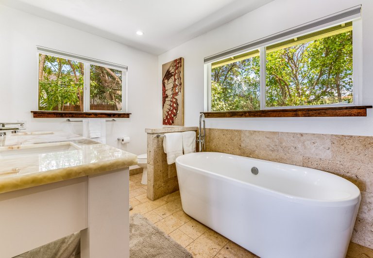a spa-like setting. Two bedrooms with queen-sized beds are quiet and cozy with